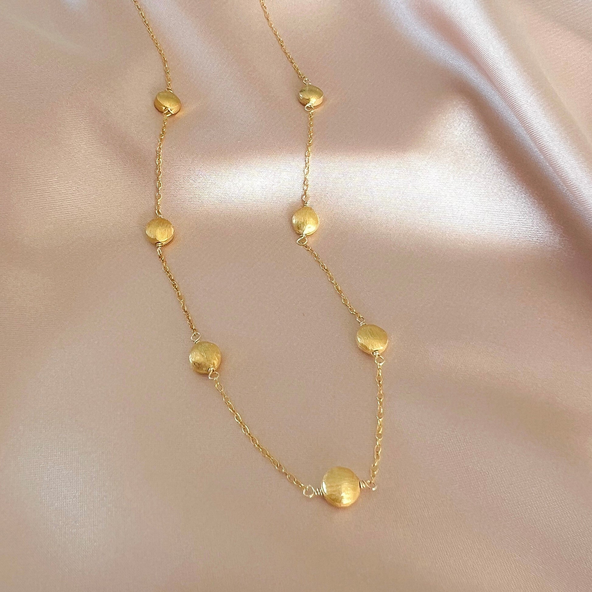 Our Gold Station Necklace makes a statement of luxury and sophistication. Handmade by expert female artisans and perfect for everyday glam. Crafted with 14k gold plated over the finest Italian Silver, this elegant accessory is perfect for layering and wearing everyday. Fully adjustable from 16"-18" in length with a secure spring ring clasp so you can wear it with confidence.