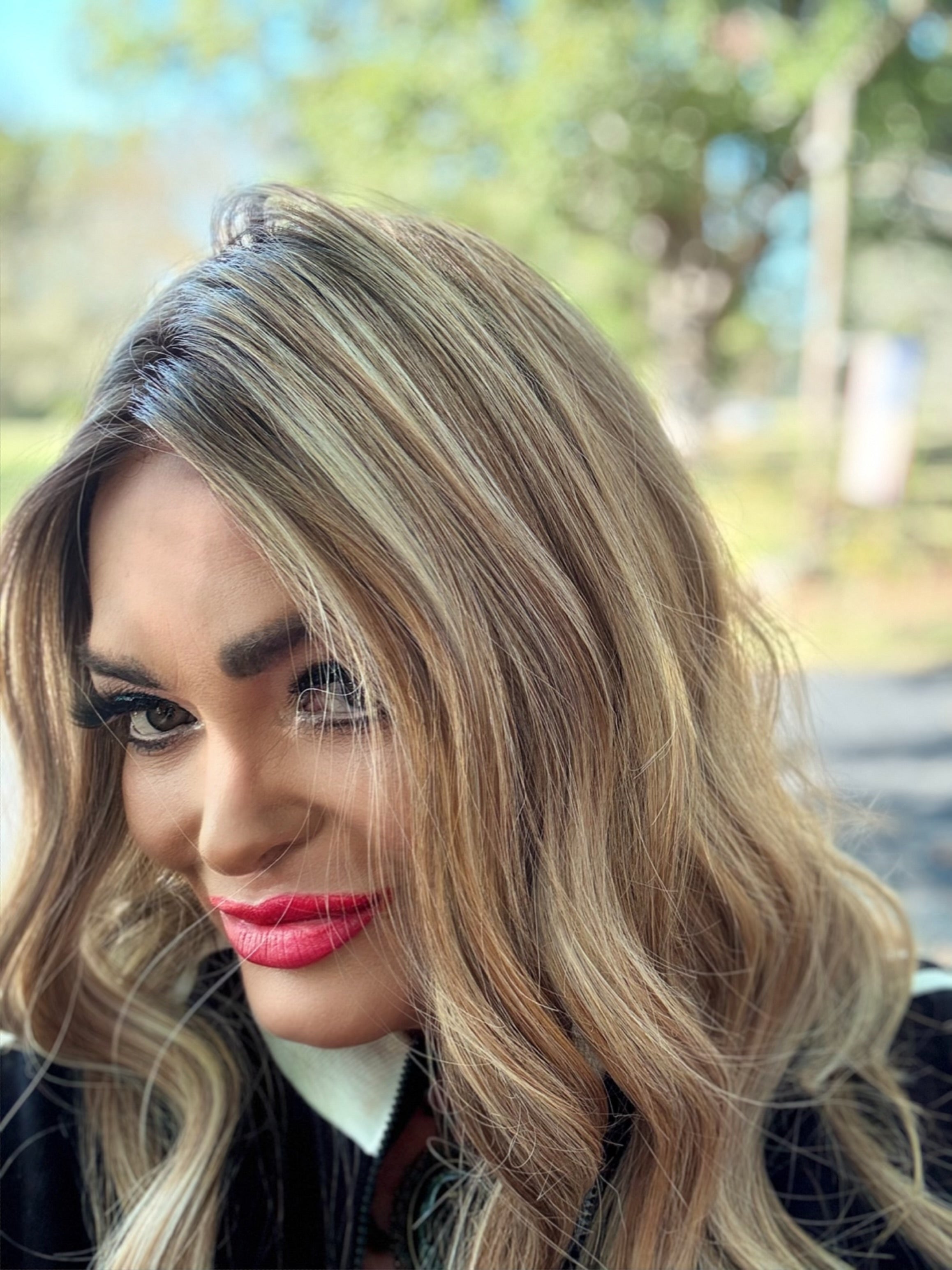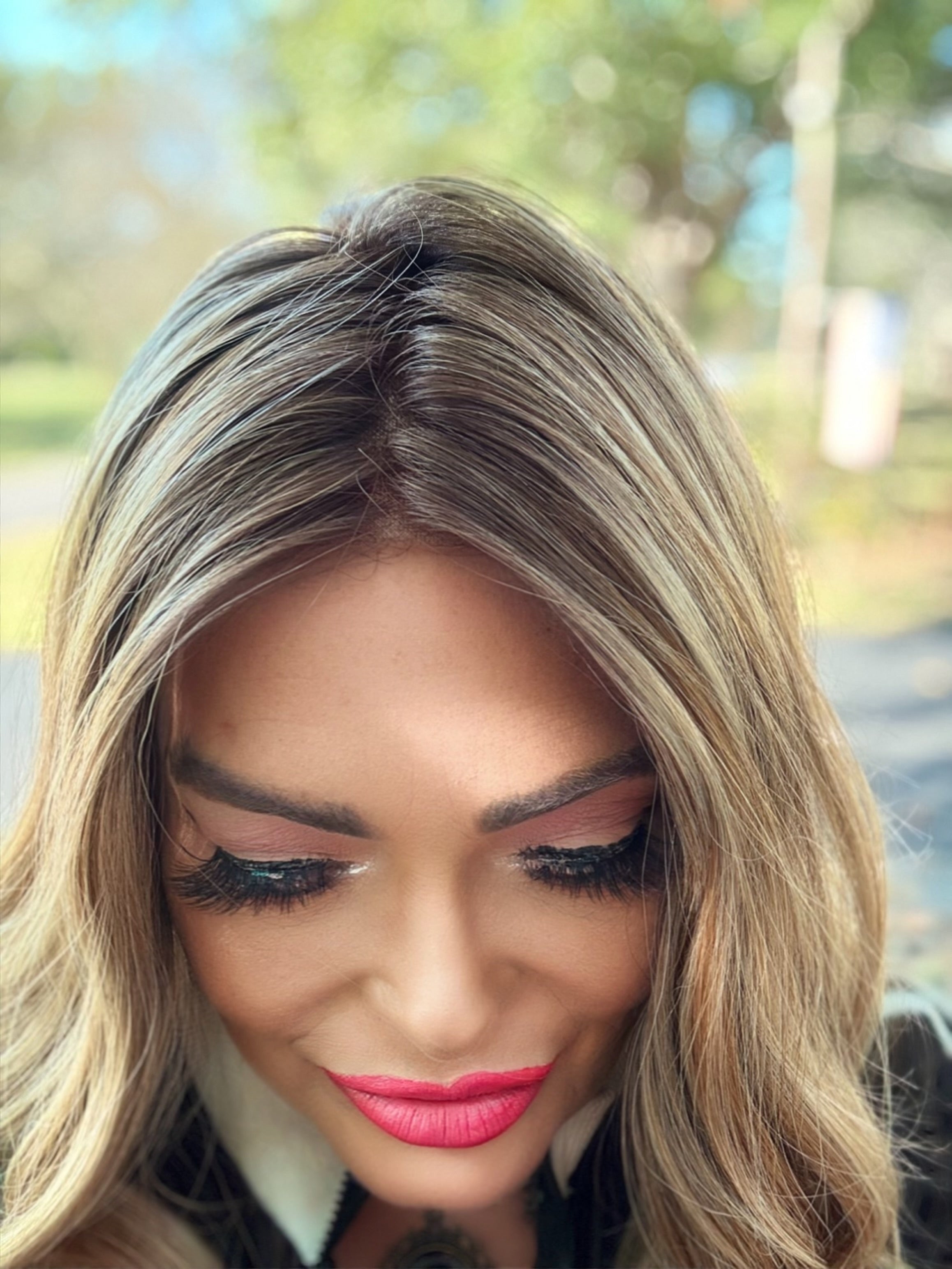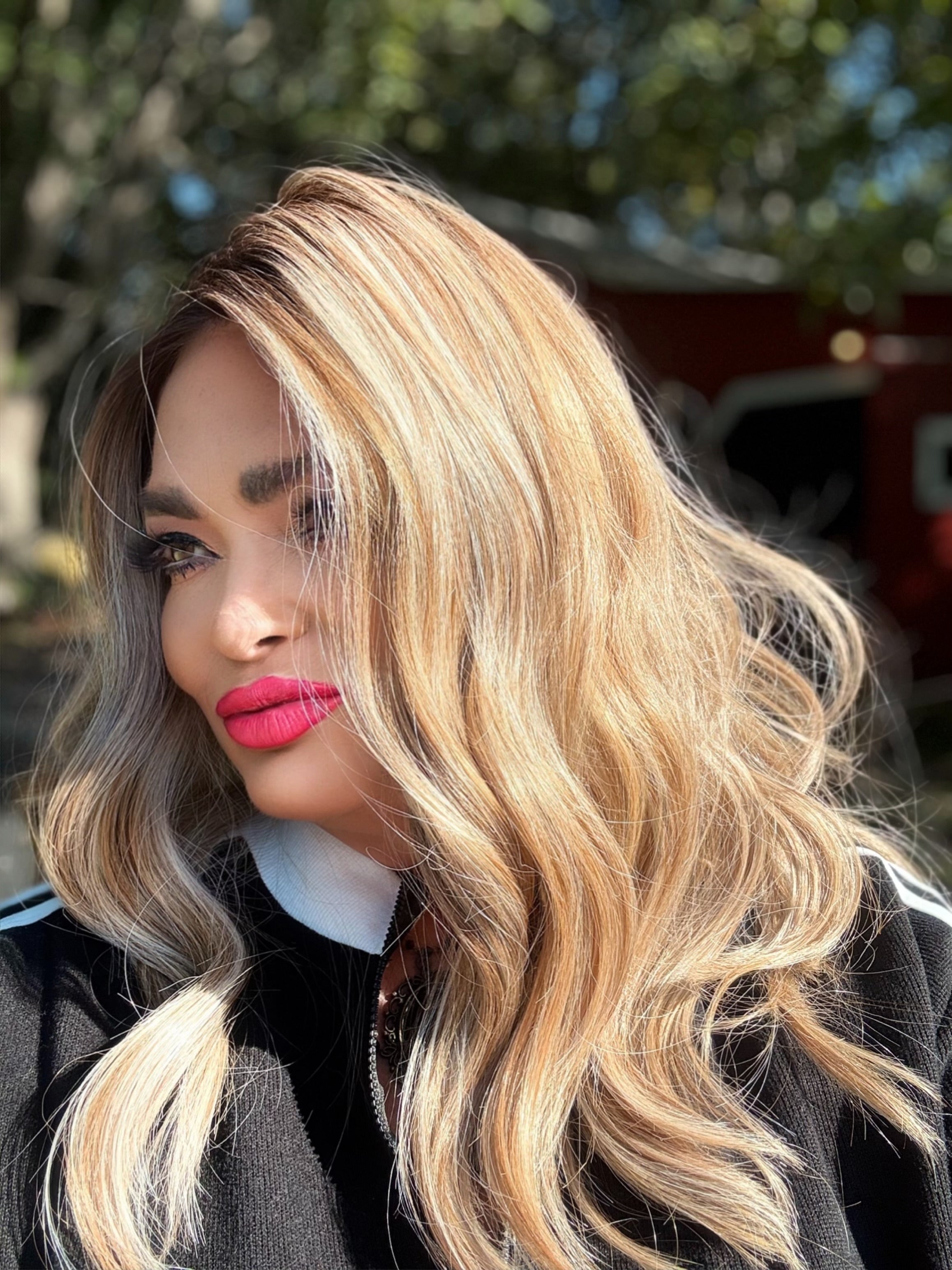 Experience the elegance of GOLDIE, a luxury full monofilament lace front wig crafted with a premium heat-resistant Futura synthetic fiber blend. Its 18-inch loose wave style features a stunning blonde mix with natural low lights and subtle rooting for a lifelike finish. Designed for comfort and versatility, the cap accommodates petite to standard sizes with adjustable straps and a free part for customizable styling. Ideal for those seeking a sophisticated, natural look combined with durable, easy-care fibers.