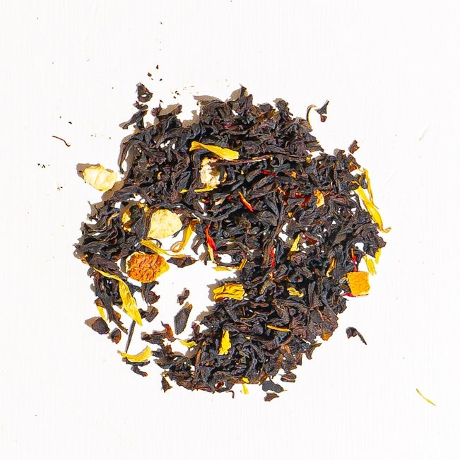 Luxury Ingredients: Black tea, Orange pieces, Calendula + Sunflower petals, Natural flavors