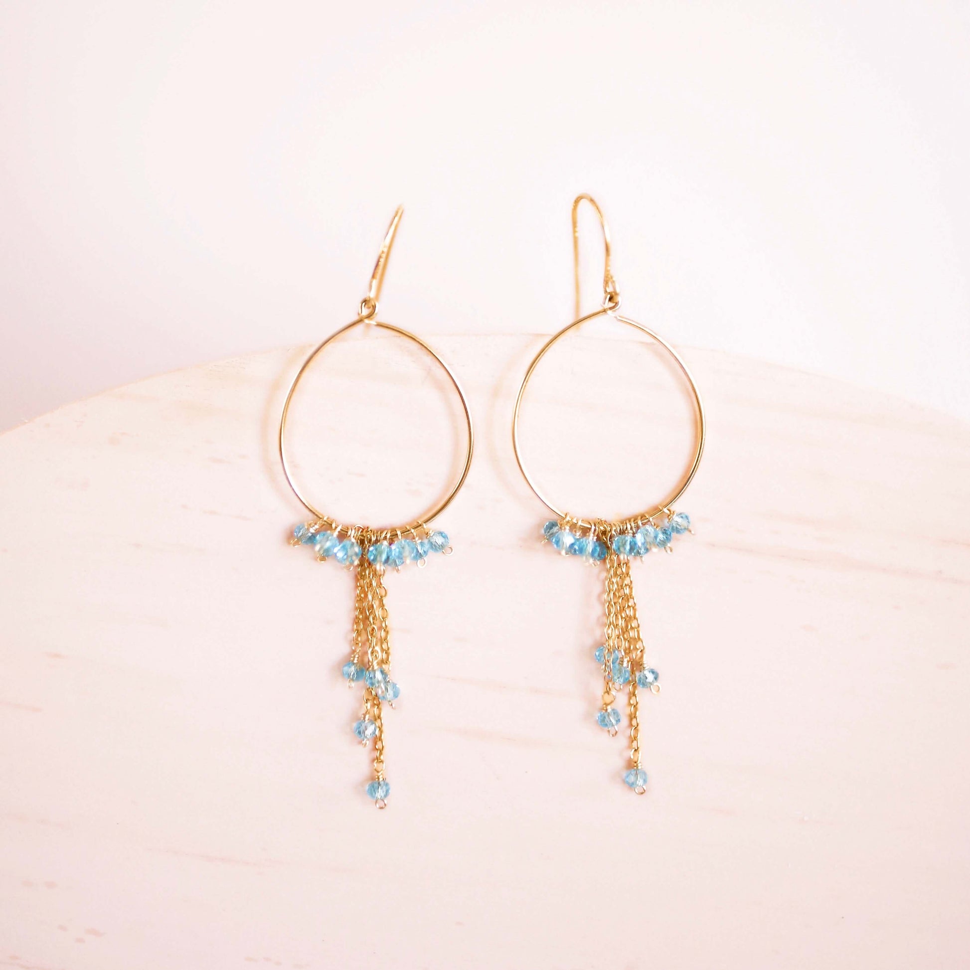 Perfection on a hoop. Delicate gemstone chains hang from super lightweight hoops.