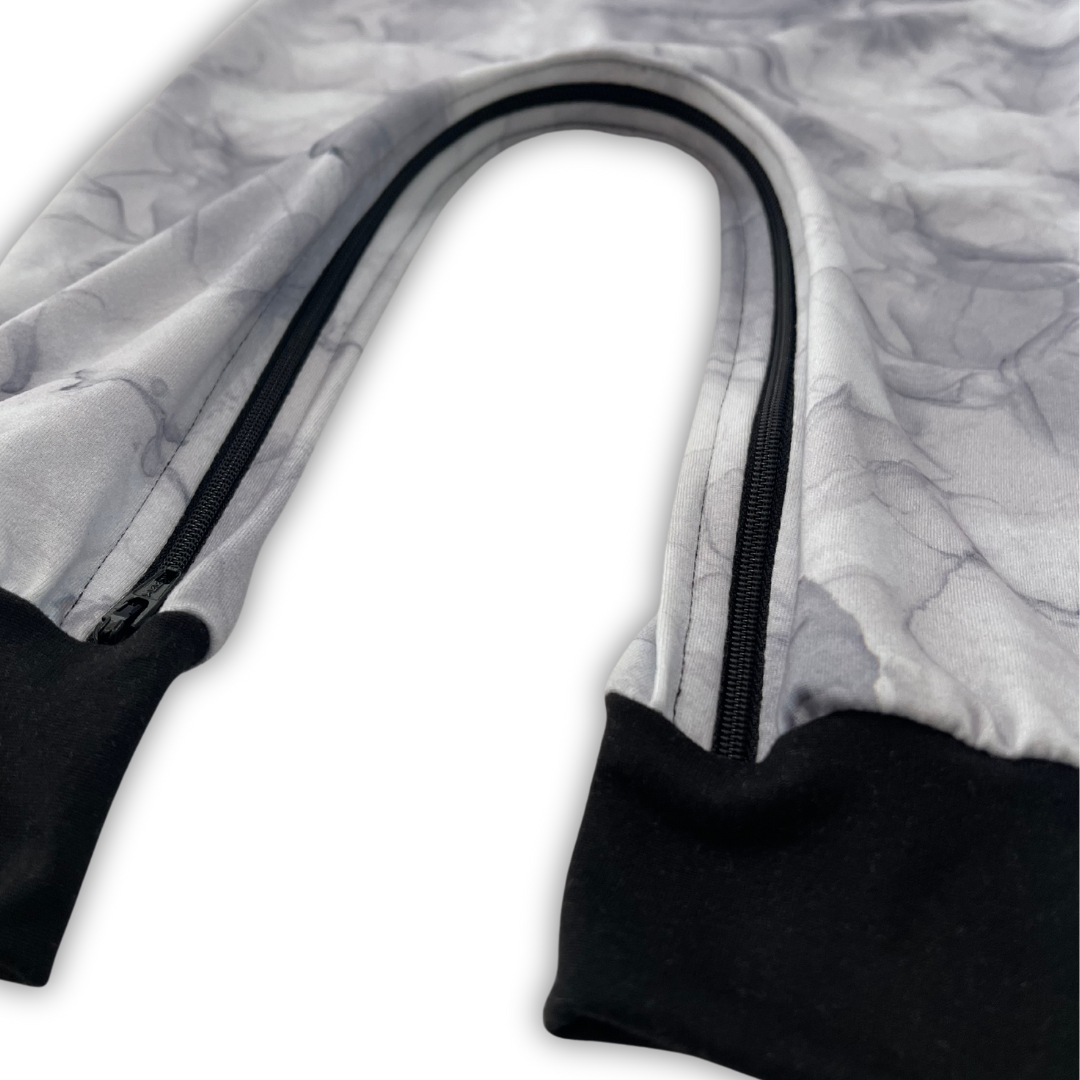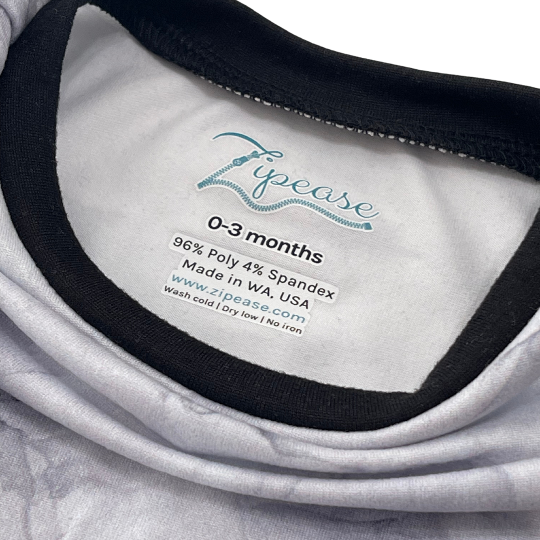 With Zipease, simplyunzip from ankle to ankle, take your child's legs out, slide the romper up, and change their diaper. Bam, it’s that easy! Our modern rompers feature a stretchy neckline to easily shimmy up your child's body in a snap without wearing out overtime. Quick on, quick off, simple diaper changes. Parent win!