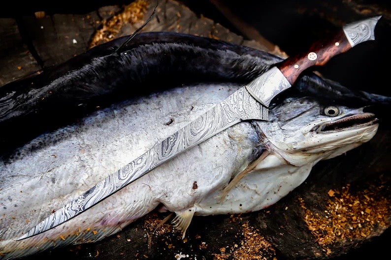Elevate your fishing and cooking game this season with our Handmade Damascus Steel Fish Fillet Knife. Designed for precision and style, this 13-inch fillet knife features an ultra-sharp 8-inch Damascus steel blade that glides effortlessly through salmon, trout, bass, or even delicate holiday catches. Perfect for summer BBQs, fall harvest feasts, or winter seafood dinners, this knife is a year-round essential for anglers and home chefs alike.