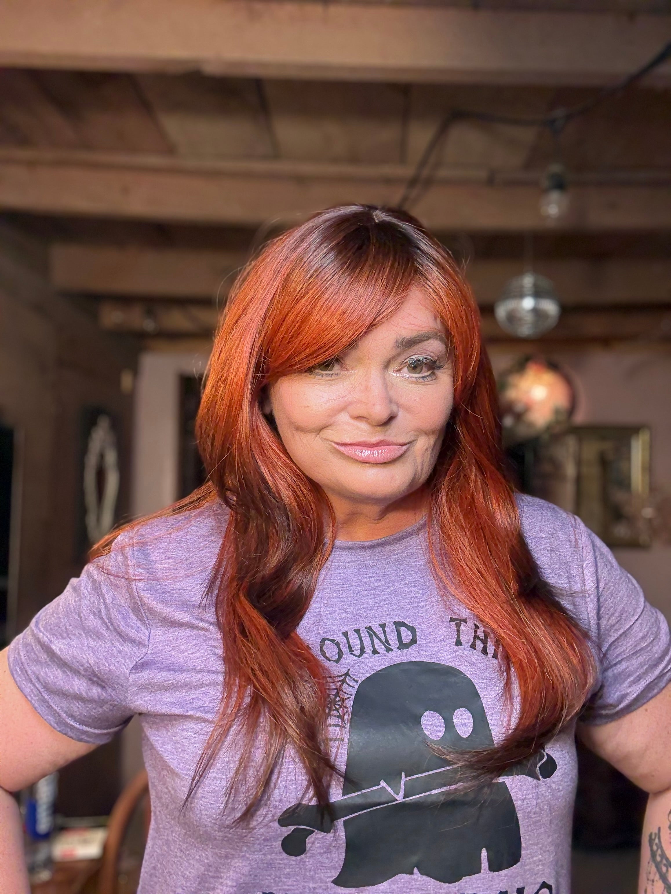 Harmony is a versatile and stylish full machine-made cap with high-quality, low-heat resistant synthetic fibers. The 20" length includes wiring and curtain bangs for a customizable look. The copper color with dark ends adds a touch of sophistication. With adjustable straps and a standard cap size, it's the perfect choice for any occasion.