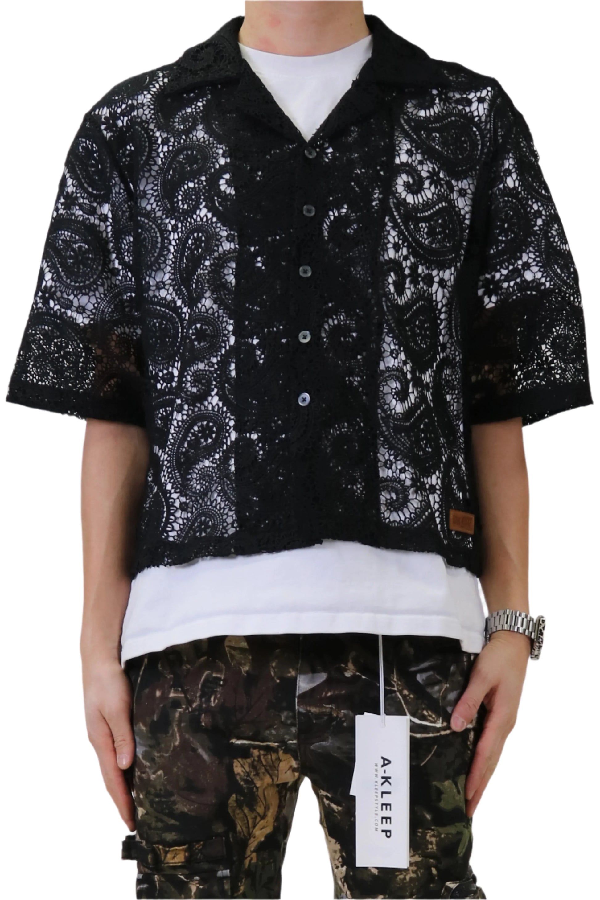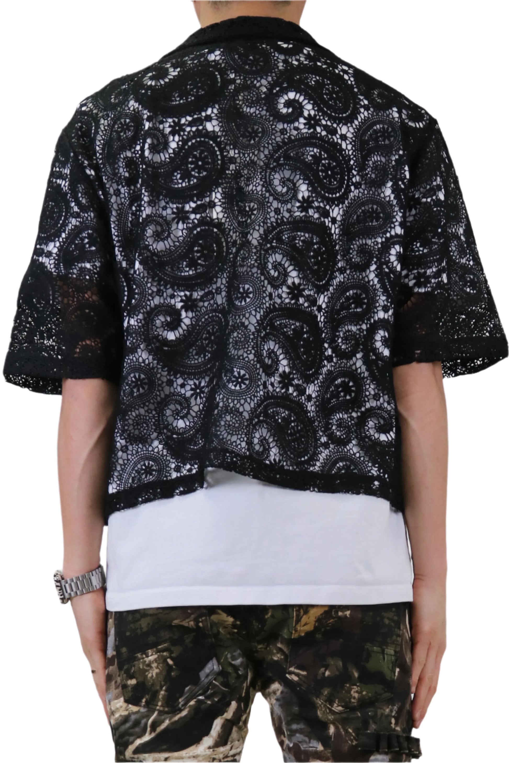 • Crop top Paisley Pattern Mesh Short Sleeve Buttondown Shirt