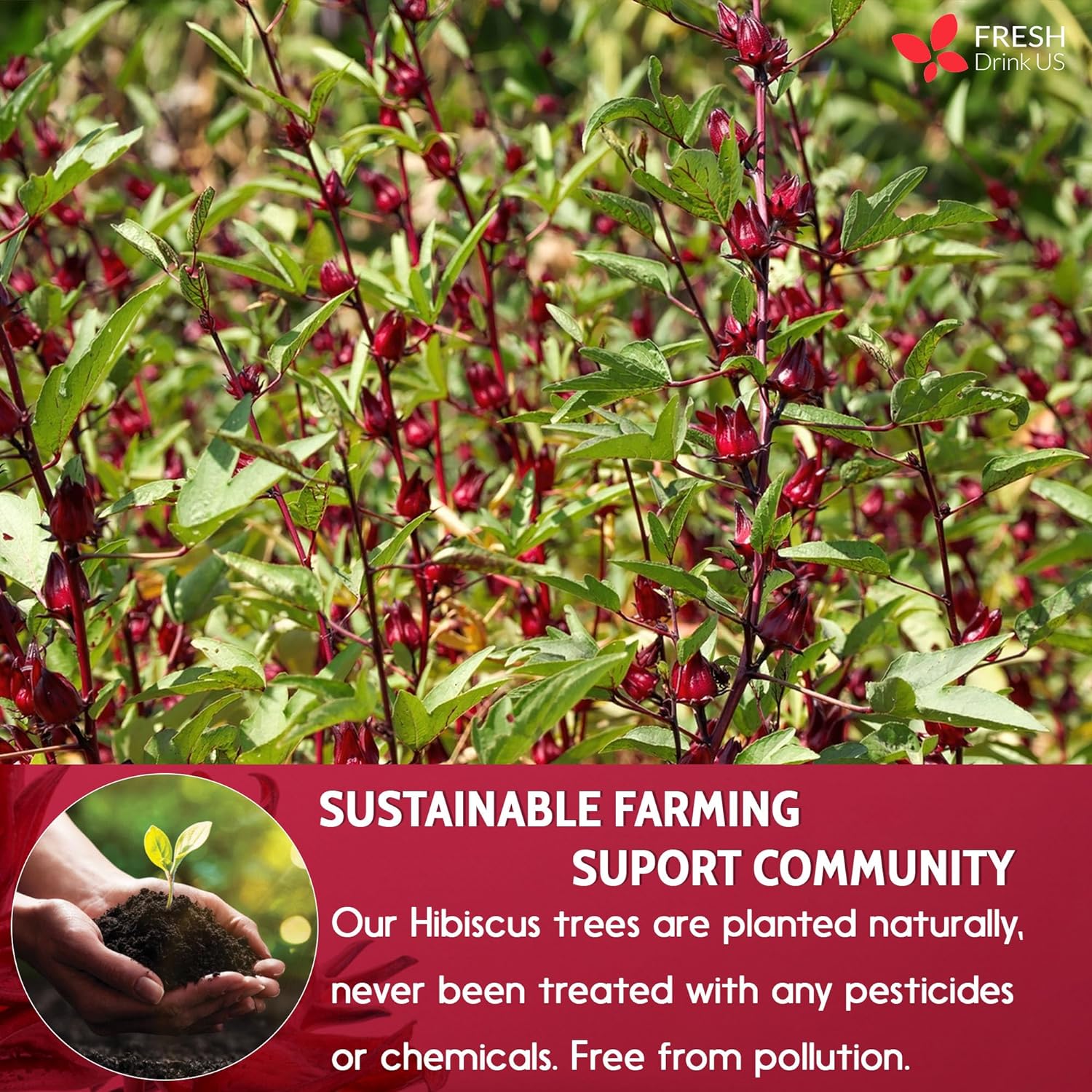 - 100% Natural and Pure: Our hibiscus flowers tea is crafted from 100% natural hibiscus dried flowers, grown without pesticides or herbicides. FreshDrinkUs adheres to strict international standards, ensuring a product that's pure, safe, and unmatched in quality.