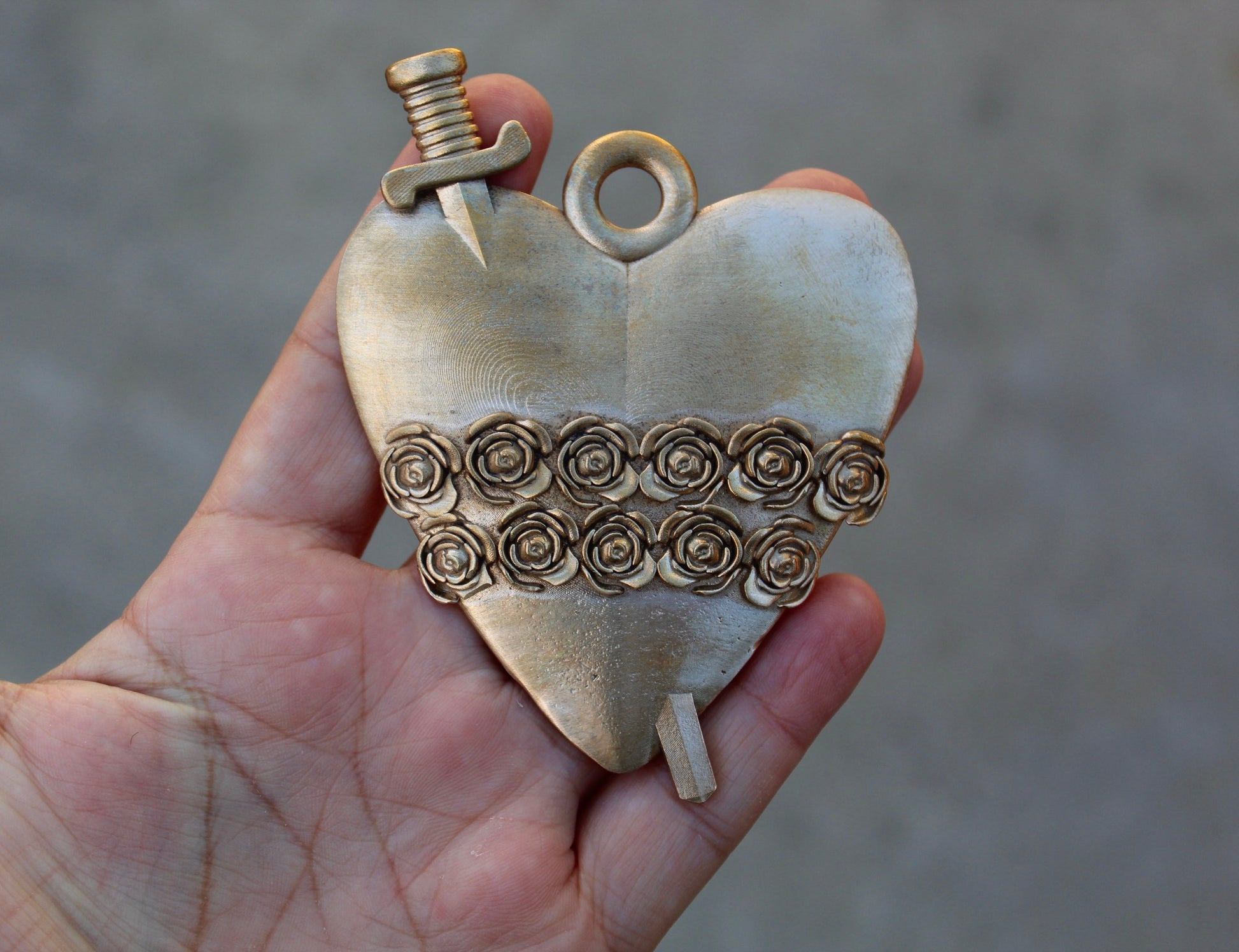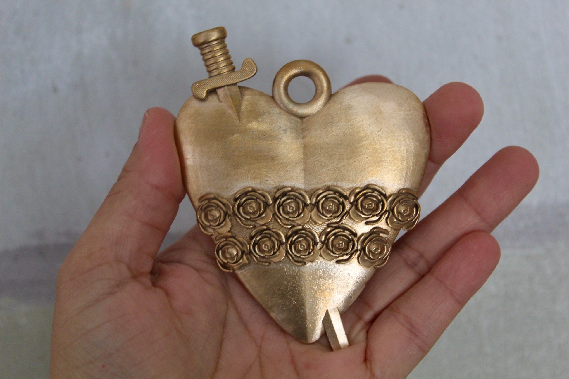 This gorgeous Immaculate Heart of Mary can be used as table top decor, shadow box art, prayer space decor, and more! The design is raised, while the back is blank. Over time, the polished bronze medals will develop a beautiful patina, adding to their charm. If you prefer a shiny look, simply clean it with a bronze cleaner. Ethically handmade in Southern California, this piece is a beautiful way to enhance your home decor with spiritual elegance.