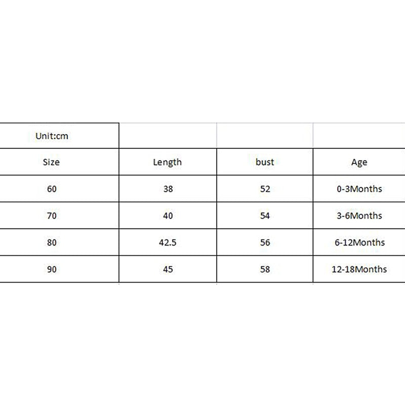 60 Length: 14.96 Bust: 20.47 Suggest Age: 0-3 Months