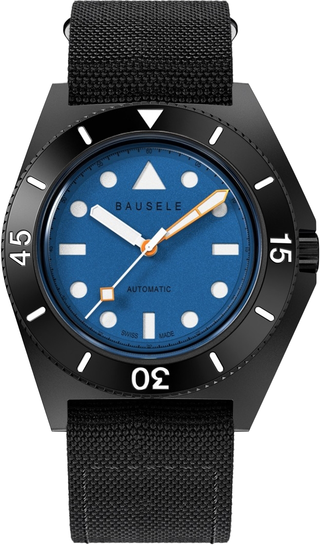 The tranquil beauty of the sun’s final descent as the sky shifts into deep blue hues, mirroring the vast ocean below. The black case represents the fading light, while the blue dial echoes the serene twilight over the reef, where the sea and sky meet in harmony. With a crown filled with sand from Manly Beach, this watch pays homage to the peaceful twilight moments, where the day’s last light fades into the cool embrace of the night.