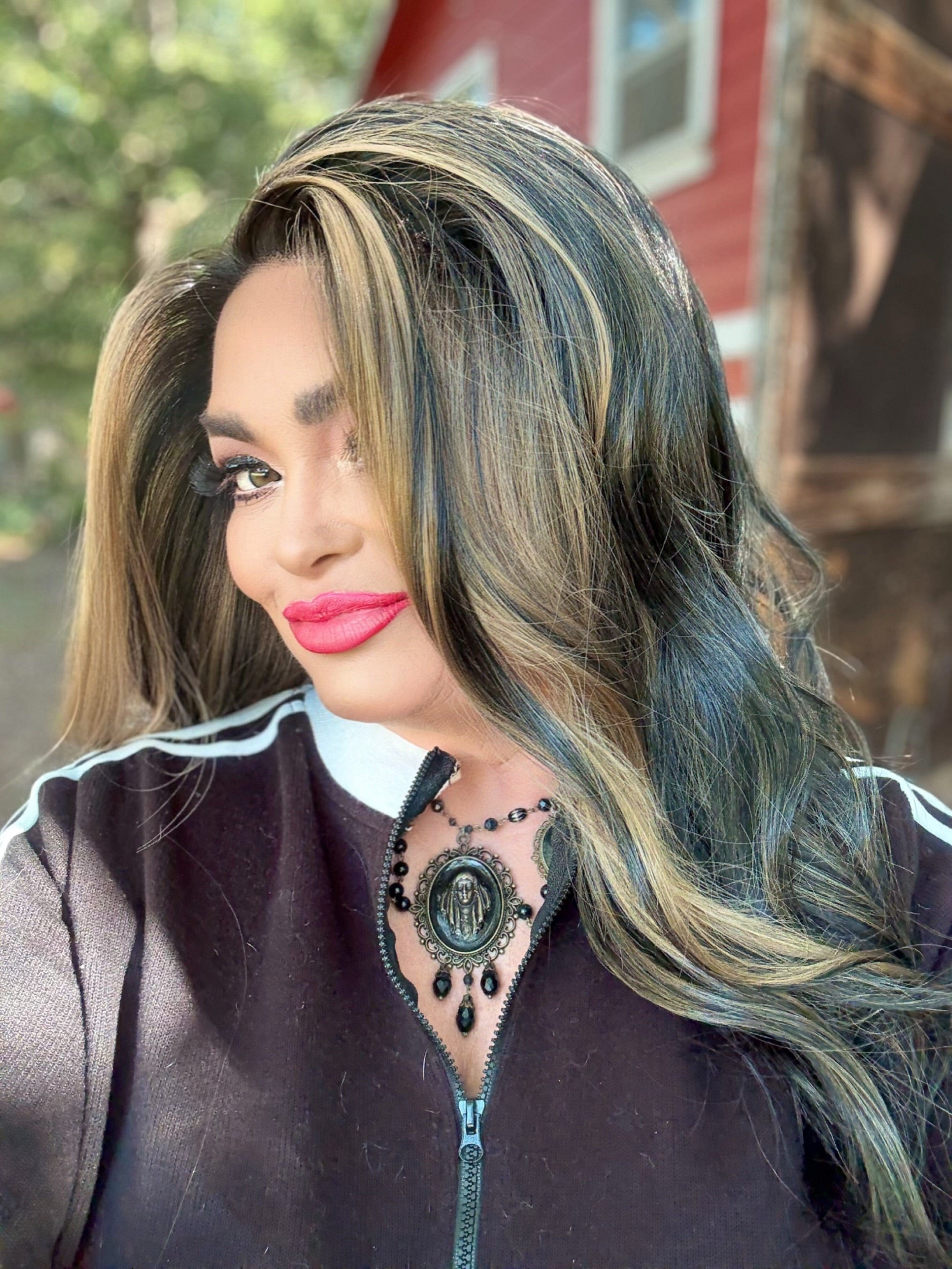 Introducing IRIS, the stunning lace front T part wig made with high-quality heat resistant synthetic fiber. Its soft black and caramel blonde color and loose curls create a natural, voluminous look. With adjustable straps and customizable options, this standard cap size wig offers a perfect fit.