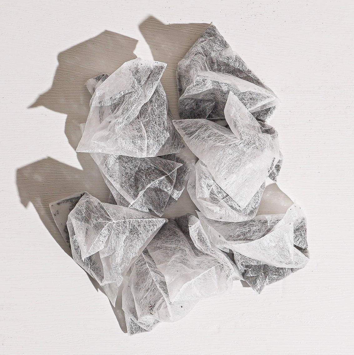 The tea bags are unbleached, free of wasteful envelopes, staples, strings or tags of any kind