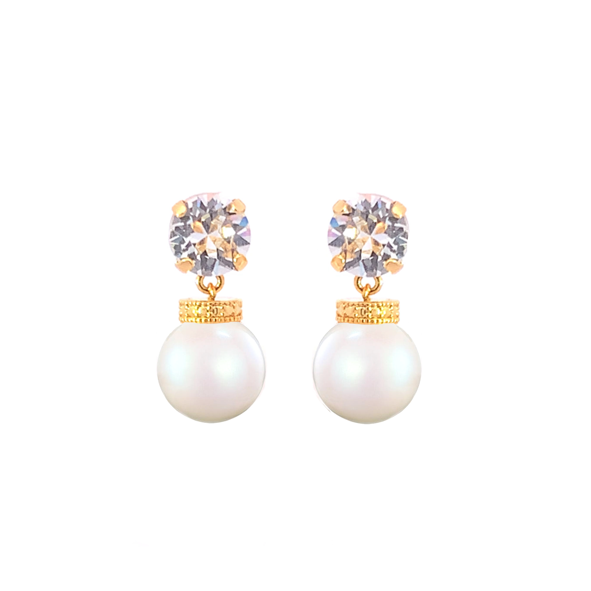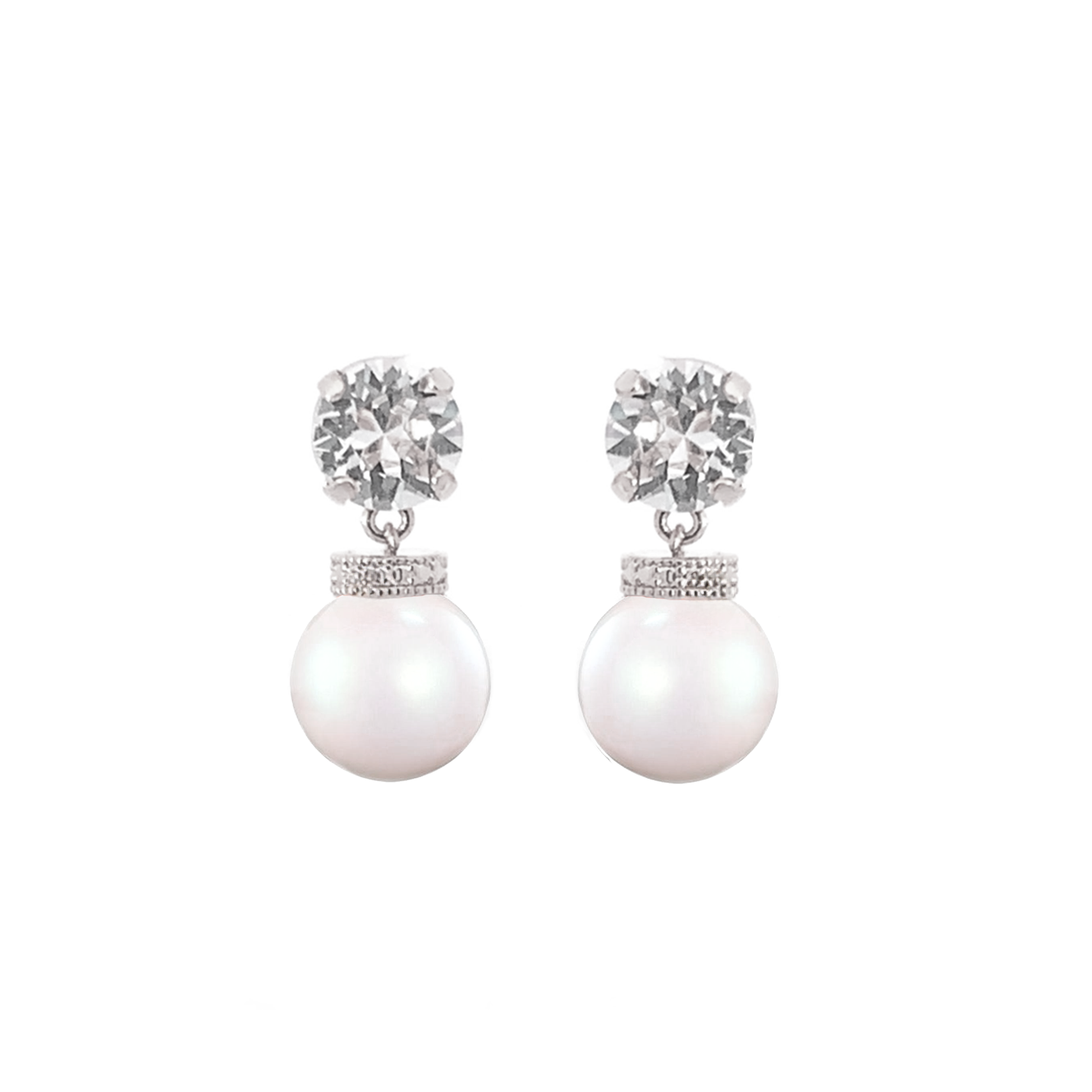 Who doesn't love a pearl drop earring? These classic, slightly oversized pearls are lightweight and are the perfect finishing touch for any formal occasion. The simulated diamond stones are also the perfect gift for April birthdays and anniversaries.