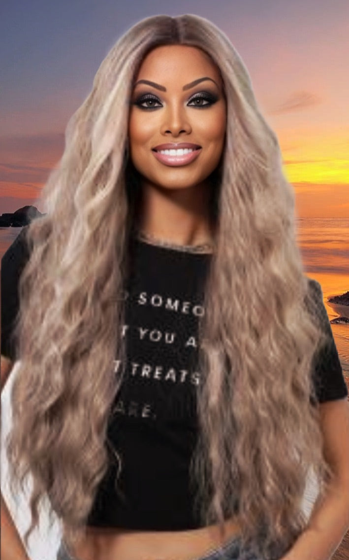 As a supplier direct shipping to customers, JAMIE offers a stunning ash blonde mix with a 26 inch beach wave and layers. Its 13 x 6 lace front and adjustable straps provide a natural look and comfortable fit. Made with premium heat resistant synthetic fiber, it offers a free part and standard cap size.