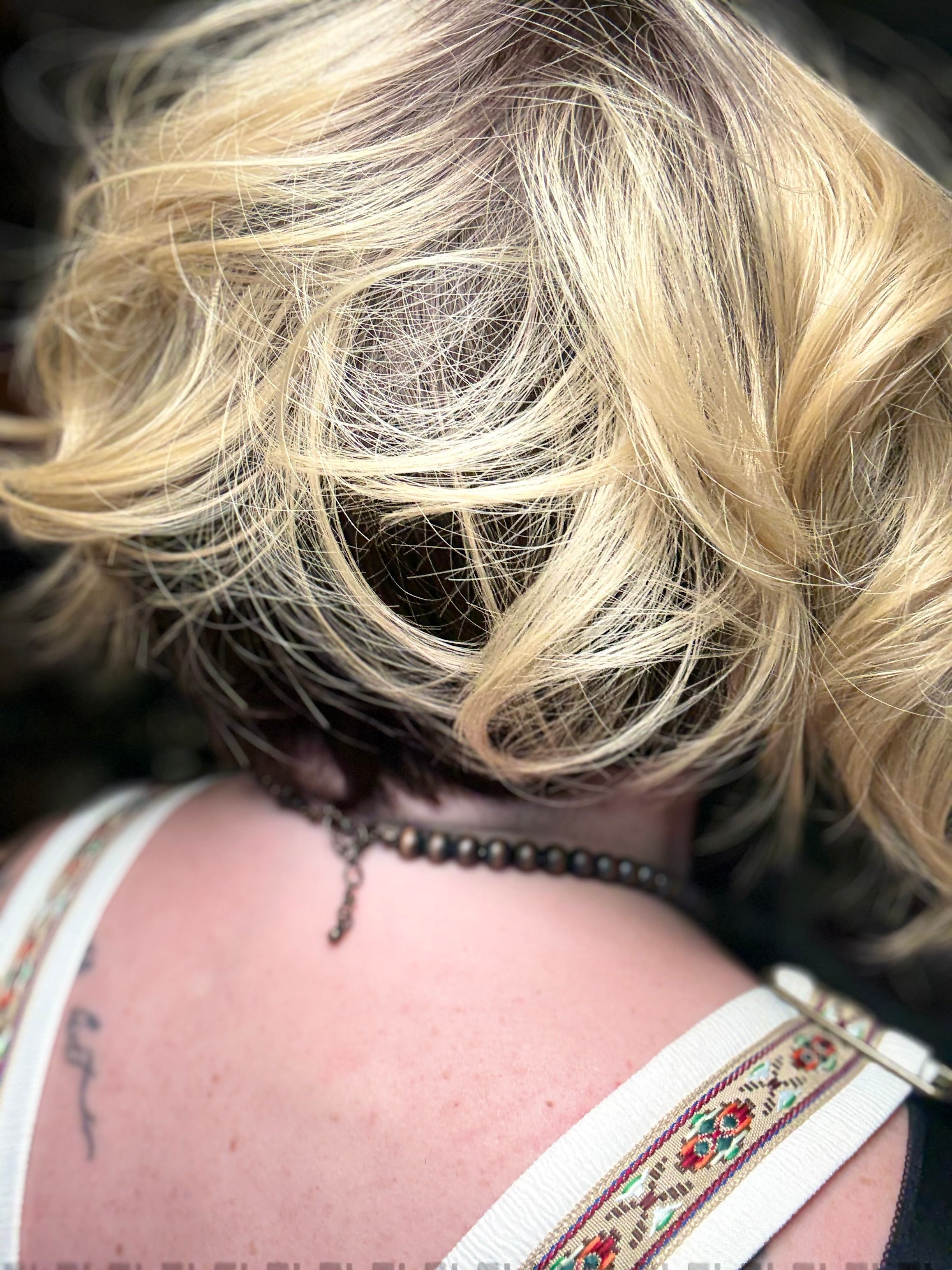 Expertly designed by WBR, JESSICA is a premium quality wig with a 13 x 3 lace front and adjustable straps. The stunning warm blonde, with darker rooting, is crafted from heat resistant, synthetic fiber with a 10" loose curl, asymmetrical cut for a natural look. The free part and standard cap size make this wig versatile and comfortable.