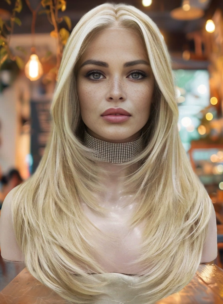 Expertly crafted with a premium heat resistant, synthetic fiber, JULES features a stunning blonde mix with layers and curtain bangs. The adjustable straps and standard cap size provide a comfortable fit for all. Enjoy the convenience of supplier direct shipping straight to your door. Experience the effortless beauty of JULES with a lace front T part for a natural look.