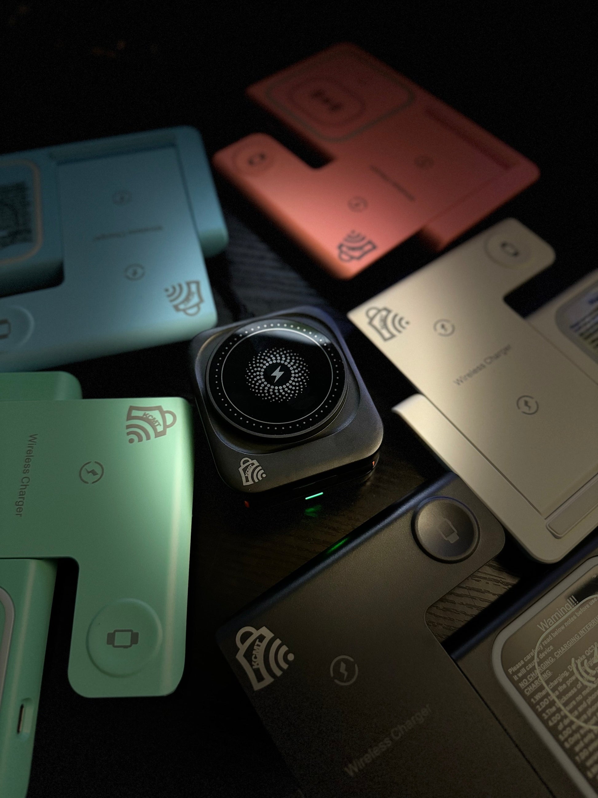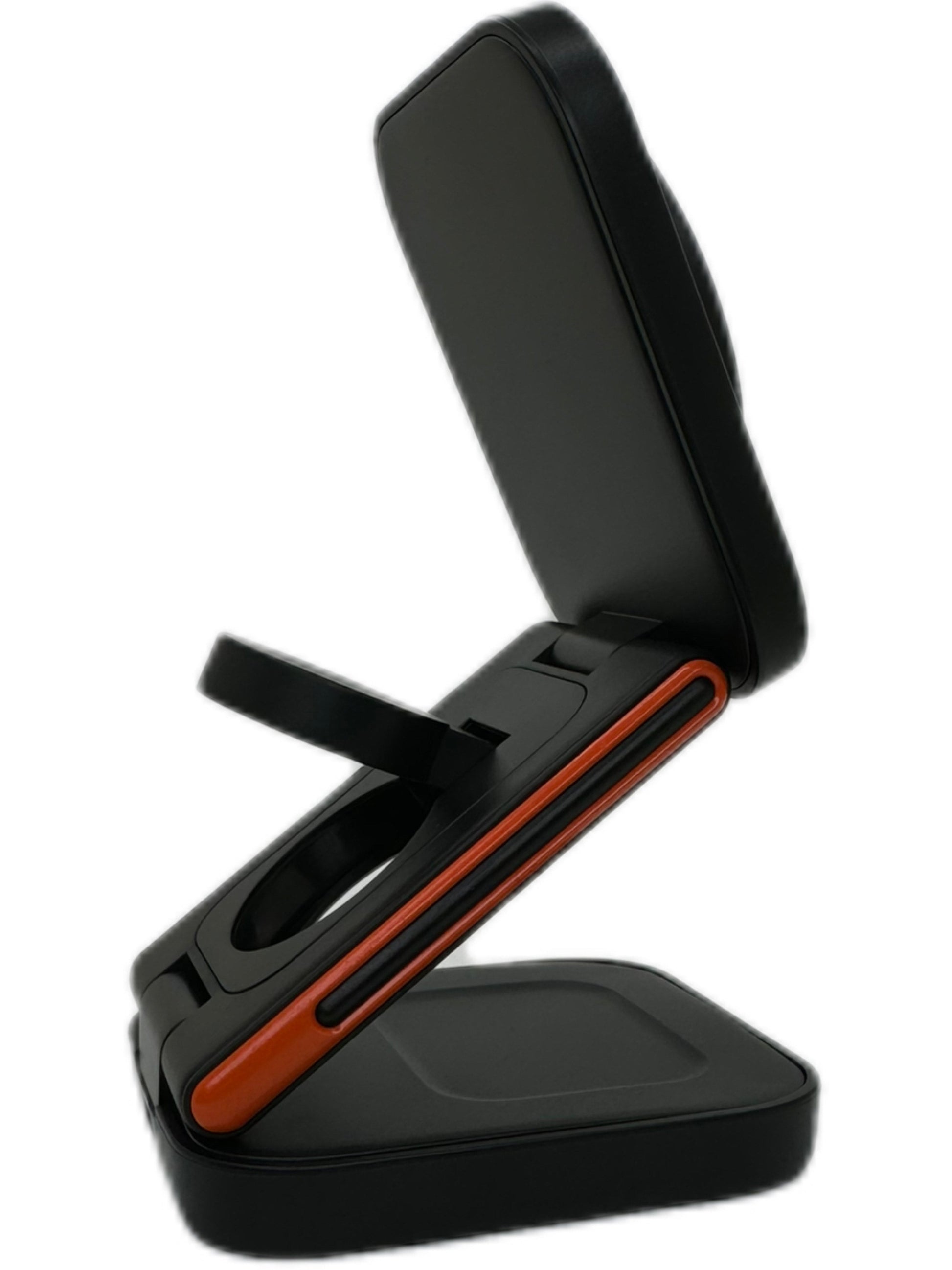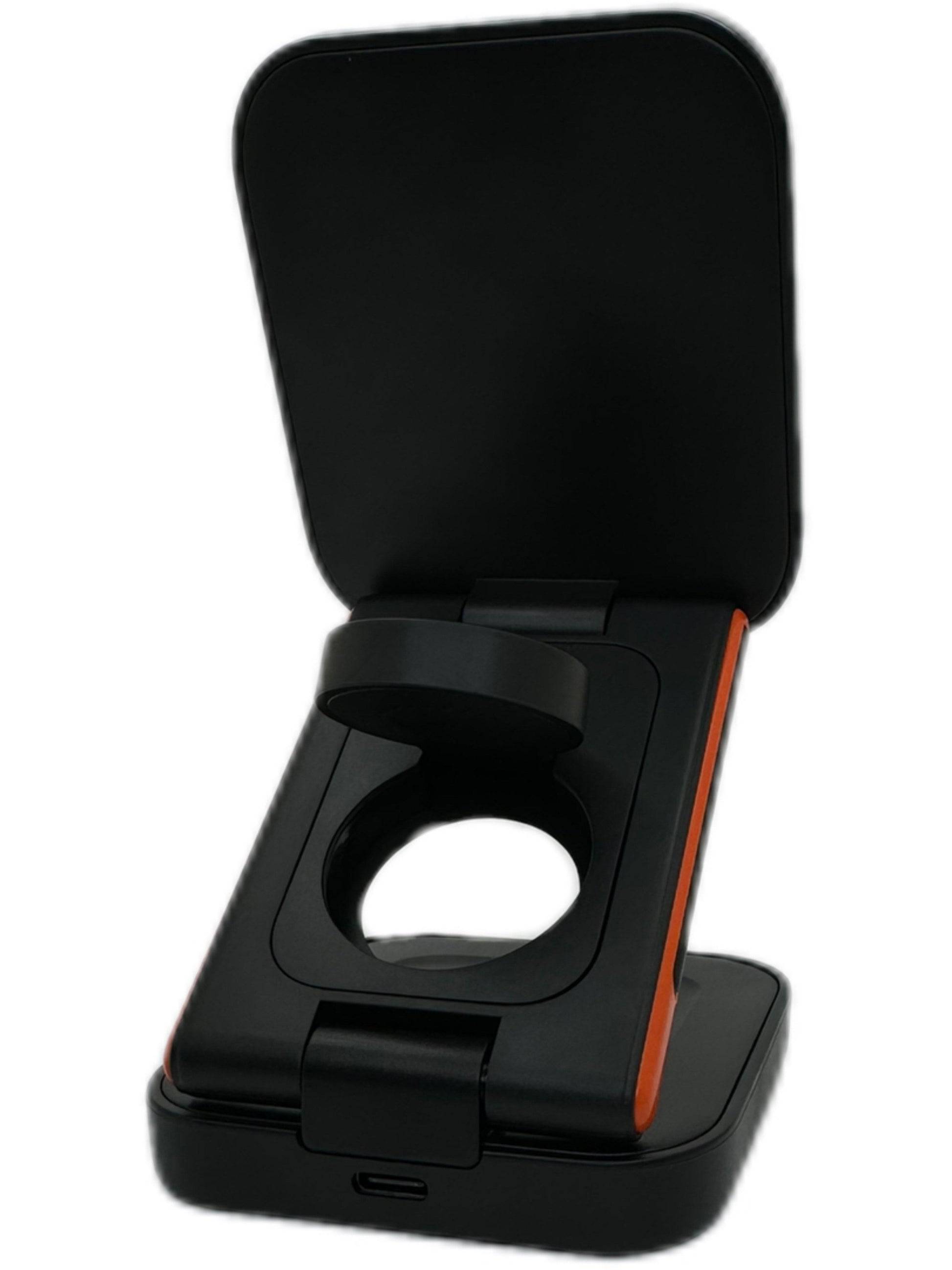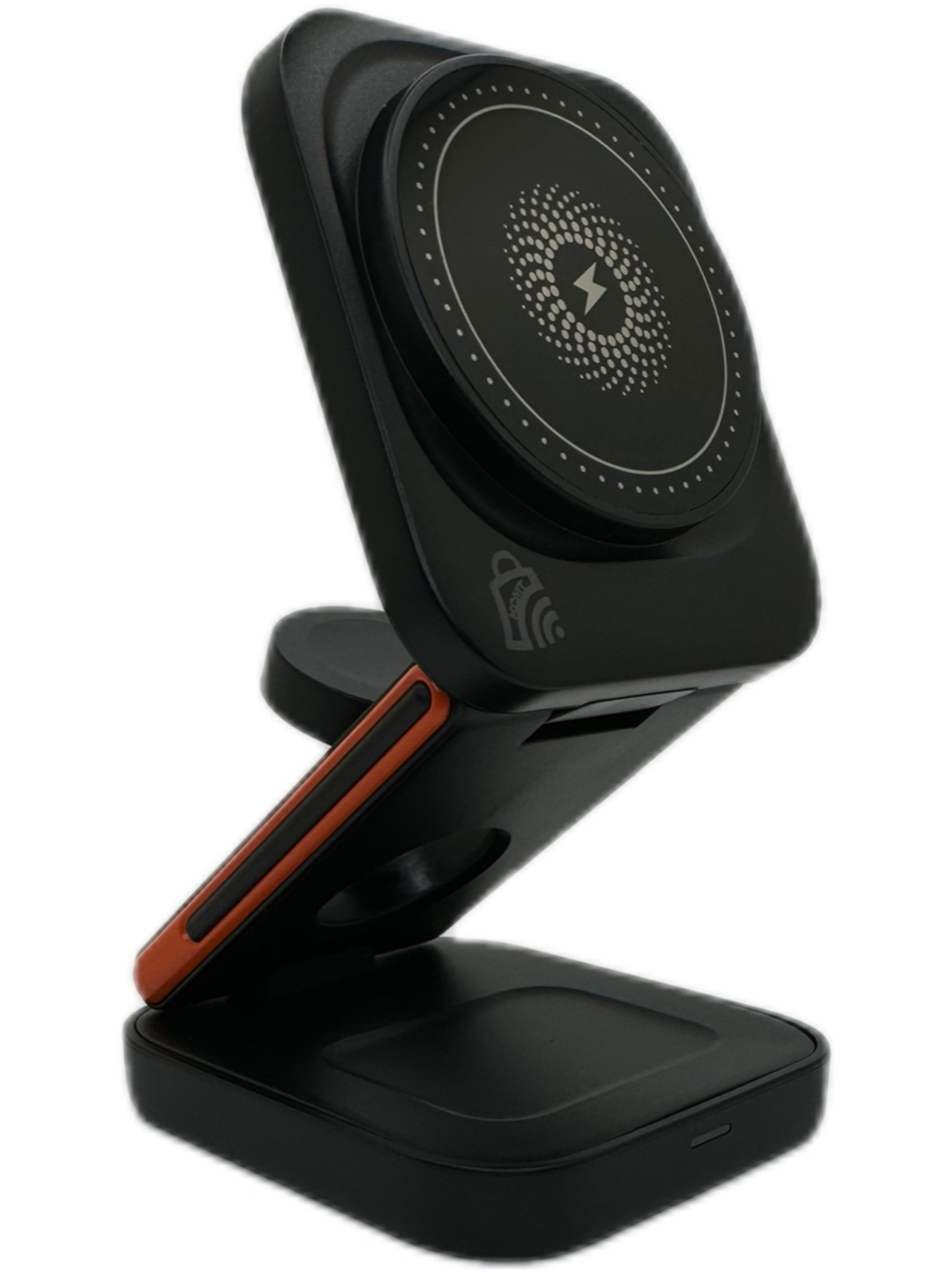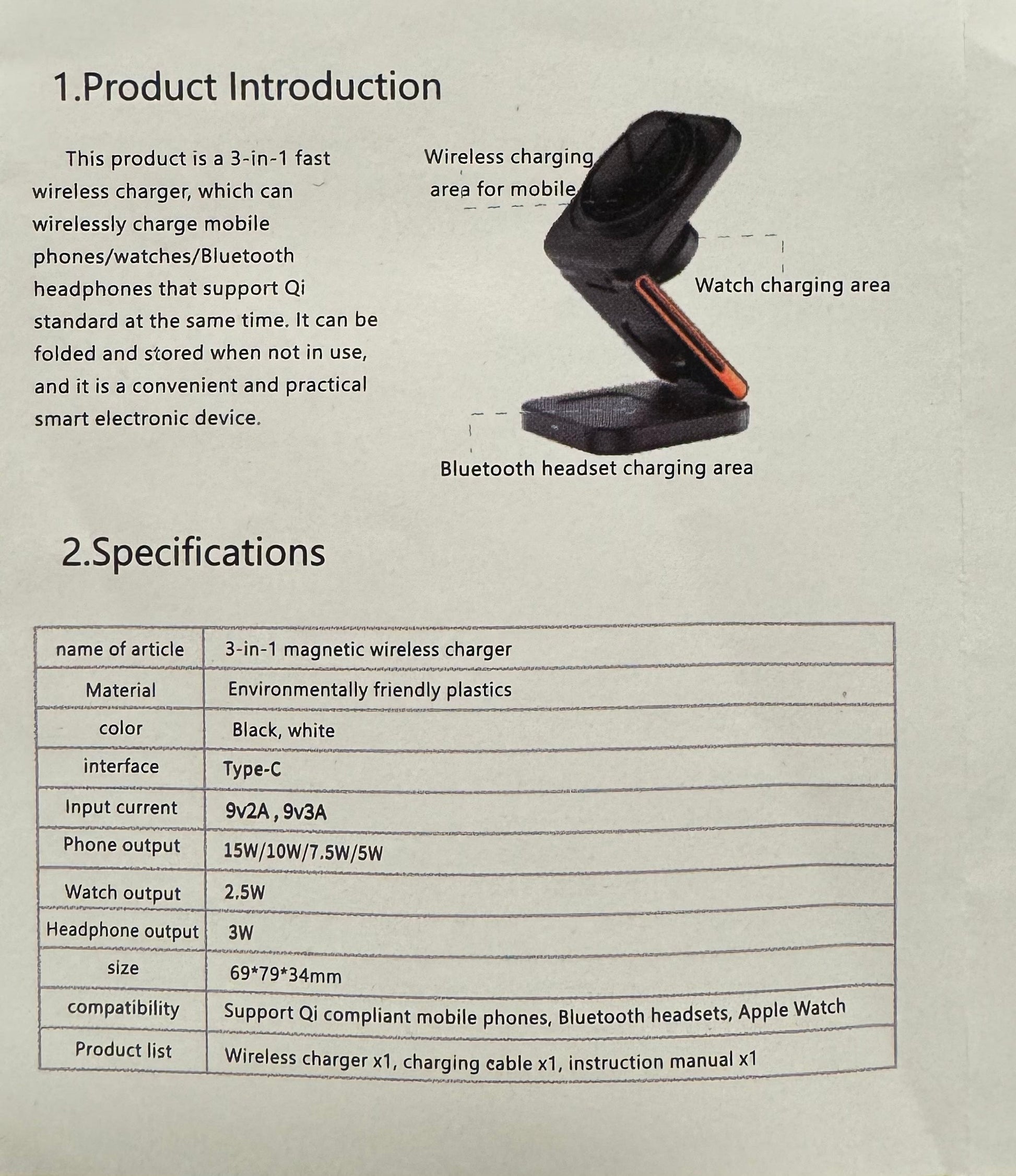 Introducing the KCMT 3-in-1 MagSafe Portable Charger, the ultimate on-the-go charging solution, as small as your palm, for your Apple devices. This sleek and compact charger features the latest MagSafe technology, making it compatible with iPhone 12 and later models, as well as other Qi-compatible devices. The 3-in-1 design allows you to charge your iPhone, Apple Watch, and AirPods simultaneously, eliminating the need for multiple chargers. With a powerful 15W output, you can expect fast and efficient charging, without the hassle of tangled cords. Whether you're traveling, working, or simply on the move, the KCMT 3-in-1 MagSafe Portable Charger is the perfect addition to your tech accessories. Say goodbye to low battery anxiety and stay connected at all times with this innovative and reliable charging solution.