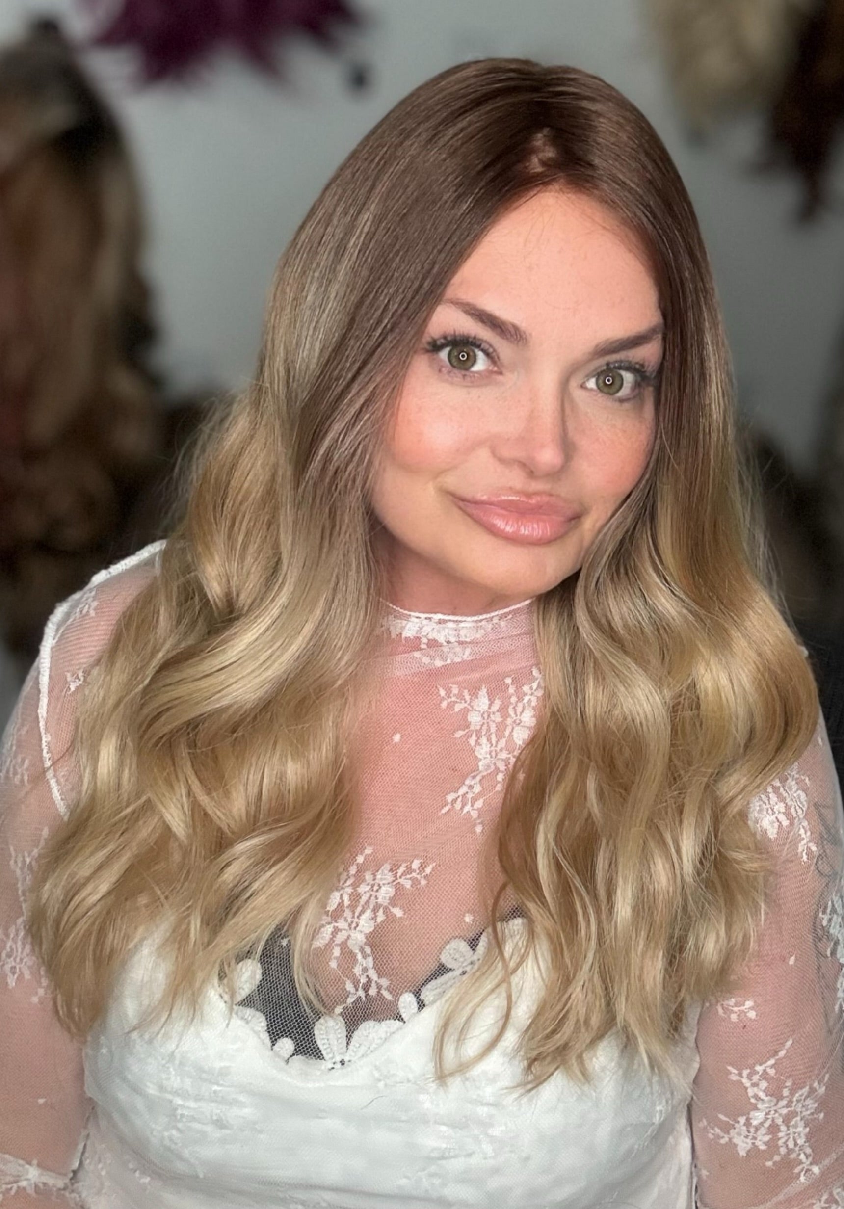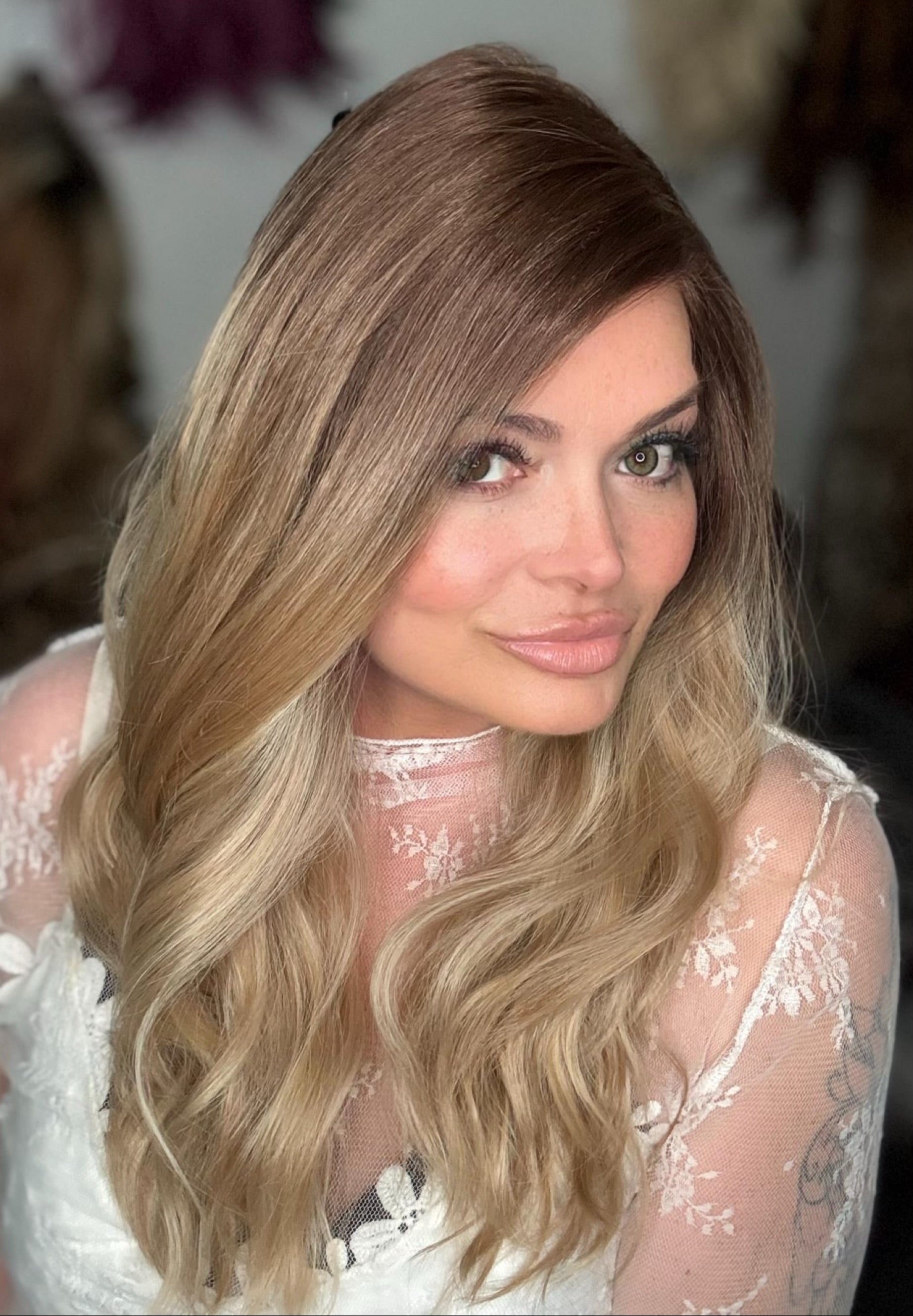 Indulge in luxury with KESHA Mono. The premium heat resistant Futura synthetic fiber blend and 18 inch loose curl light layering provide a stunning, natural look. With a velcro adjustable strap and versatile free part, this dark blonde ombre wig is perfect for petite to standard cap sizes.