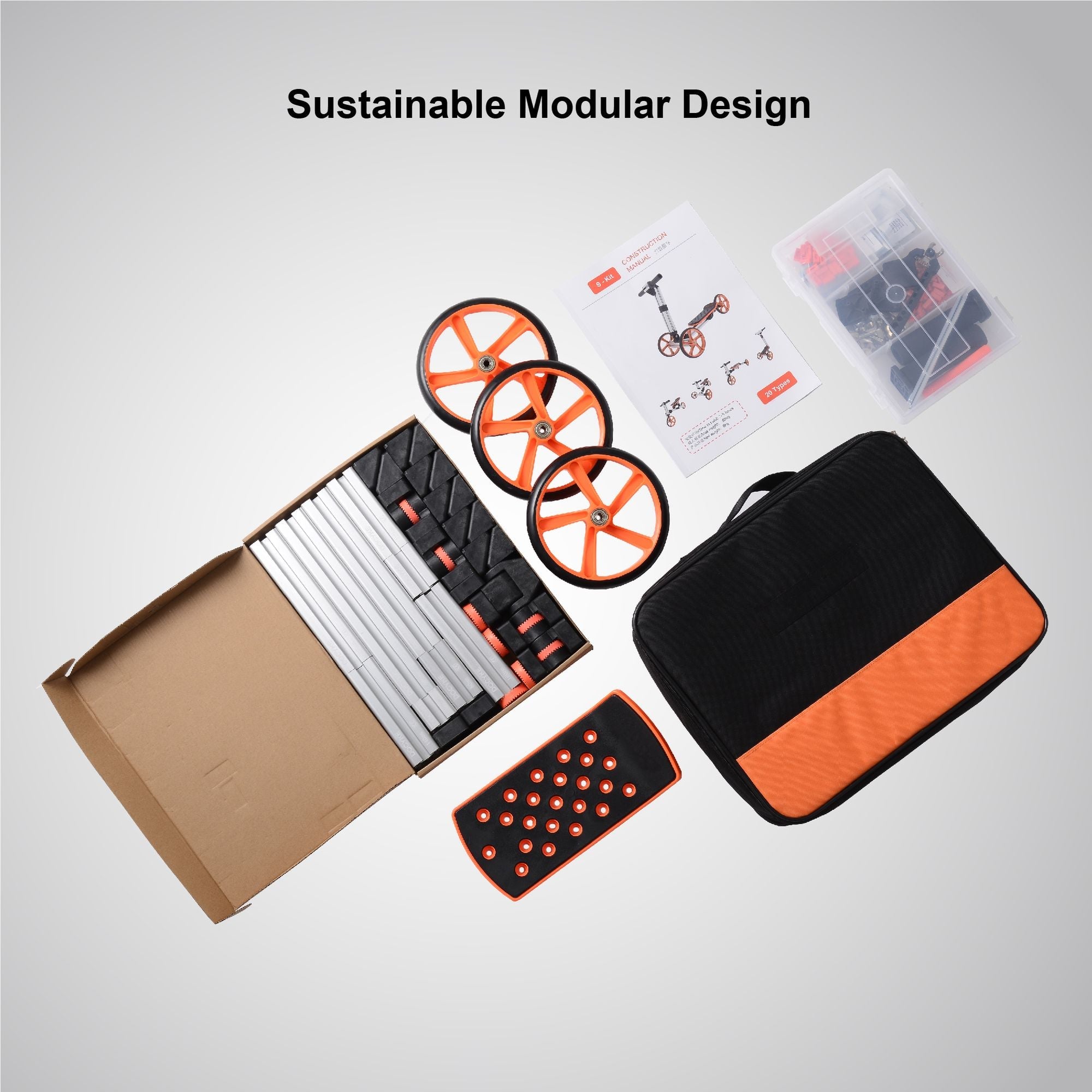 FeaturesThe perfect gift for kidsDesigned by a young team at a diverse technology company, the product is an innovative modular toy. Parents can assemble and play with their children and enjoy an interesting experience. Such interesting products can infinitely stimulate children's imagination and creativity.Variety ToysS-kit is the most basic one in our kit series, suitable for children aged 1-4. Adopt simple modular design, so more creative new combinations can be realized, at least 20 different vehicles, including stools, two-wheel balance vehicles, three-wheel balance vehicles, two-wheel scooters, three-wheel scooters.Safety and environmental protectionThis product is safe and environmentally friendly, and has obtained CPC certification. It adopts high-strength aviation aluminum alloy profiles and BASF environmentally friendly nylon plastics, and stainless steel connectors as the main components, which are corrosion-resistant and have a long service life. The polymer rubber pad ensures the comfort of the child when riding.Simple operationThe package is equipped with a well-matched special tool box, including special pliers, high-hardness hexagonal wrench, wrench extension tube, etc., so that you can immediately install your favorite toy, ensuring the simplest and most efficient assembly processSustainable modular designThis product offers a sustainable solution with a modular design concept that simply transforms together when the child grows up, or can be upgraded to fit at any time by adding an upgrade pack. Scooters, bikes, trailers and go-karts can also be upgraded to electric mode, or can use more electric motors to provide more power. This product is suitable for almost all minors.