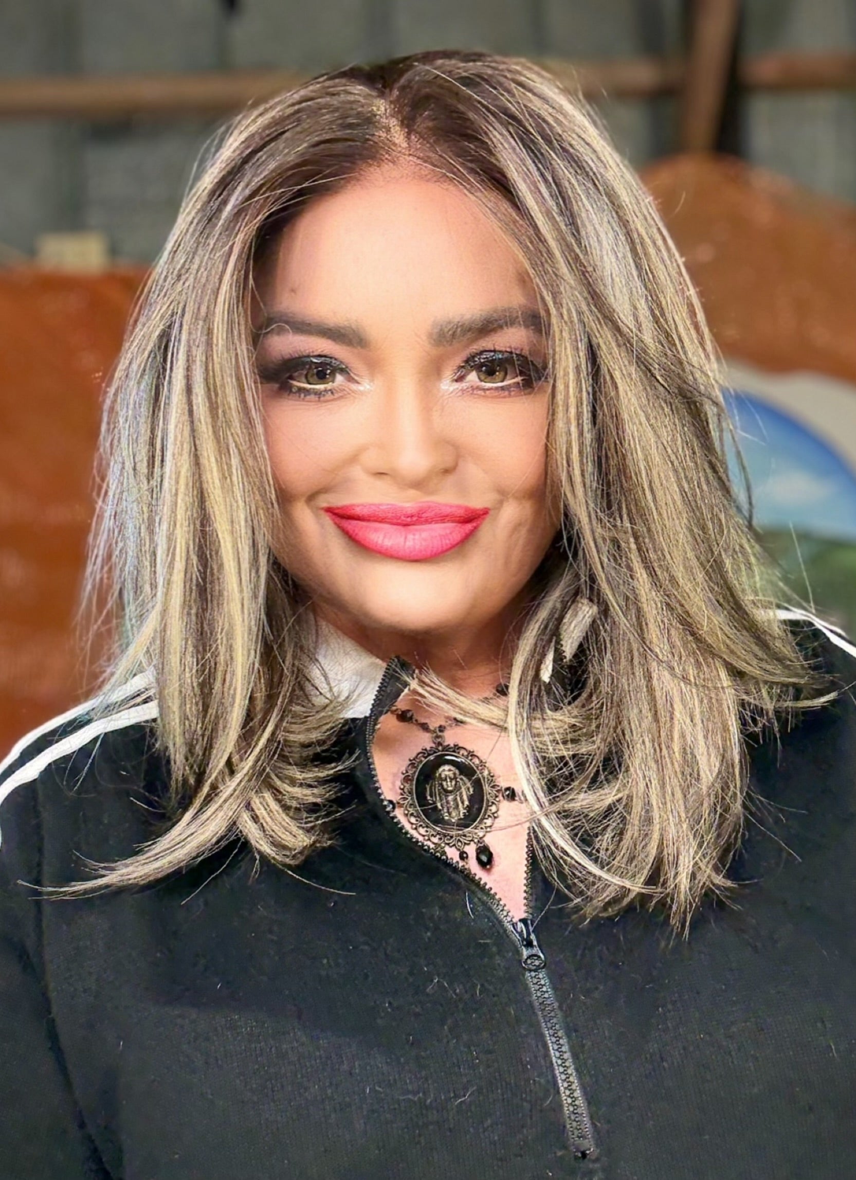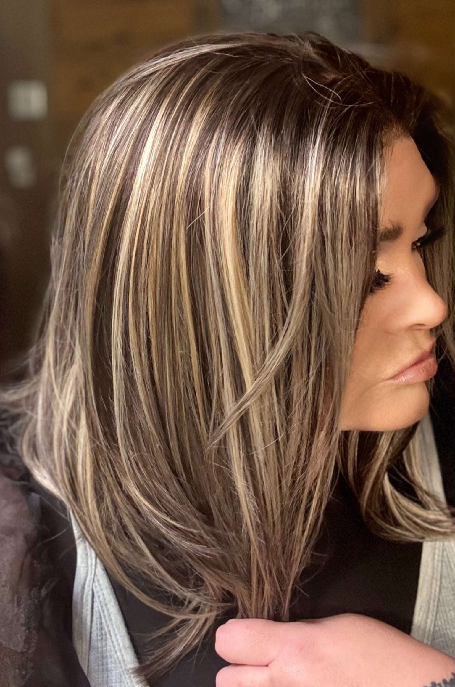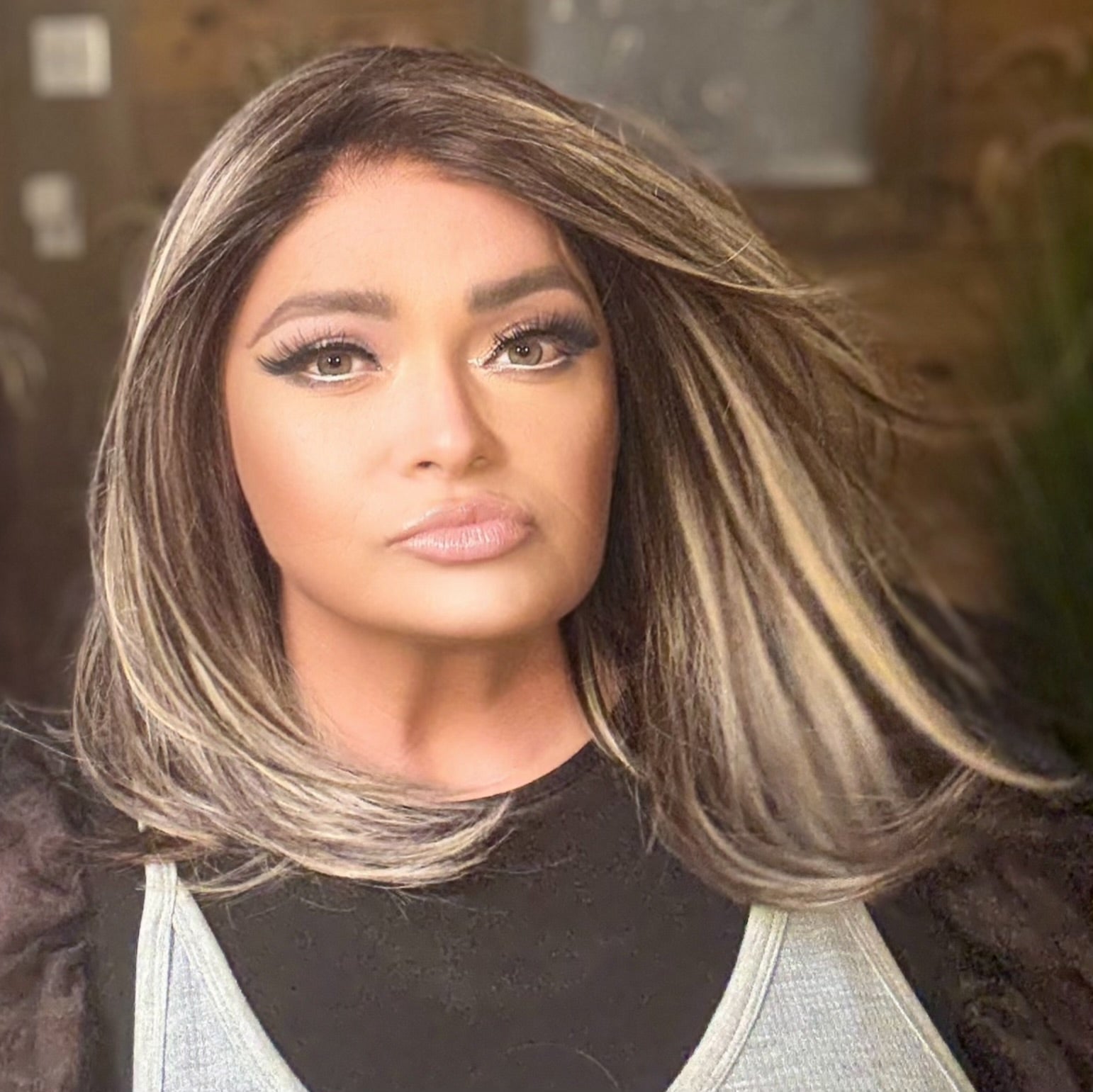 The LONDON wig features a 13x3 pre-cut lace front with free parting for versatile styling. Crafted from premium heat-resistant synthetic protein fibers, it offers durability and a natural look. Measuring 14 inches, this style includes trendy curtain bangs and a long bob (LOB) cut, showcased in a stunning brown and blonde mix. Adjustable straps and a standard cap size ensure a secure, comfortable fit for everyday wear. Ideal for those seeking a high-quality, easy-to-style synthetic