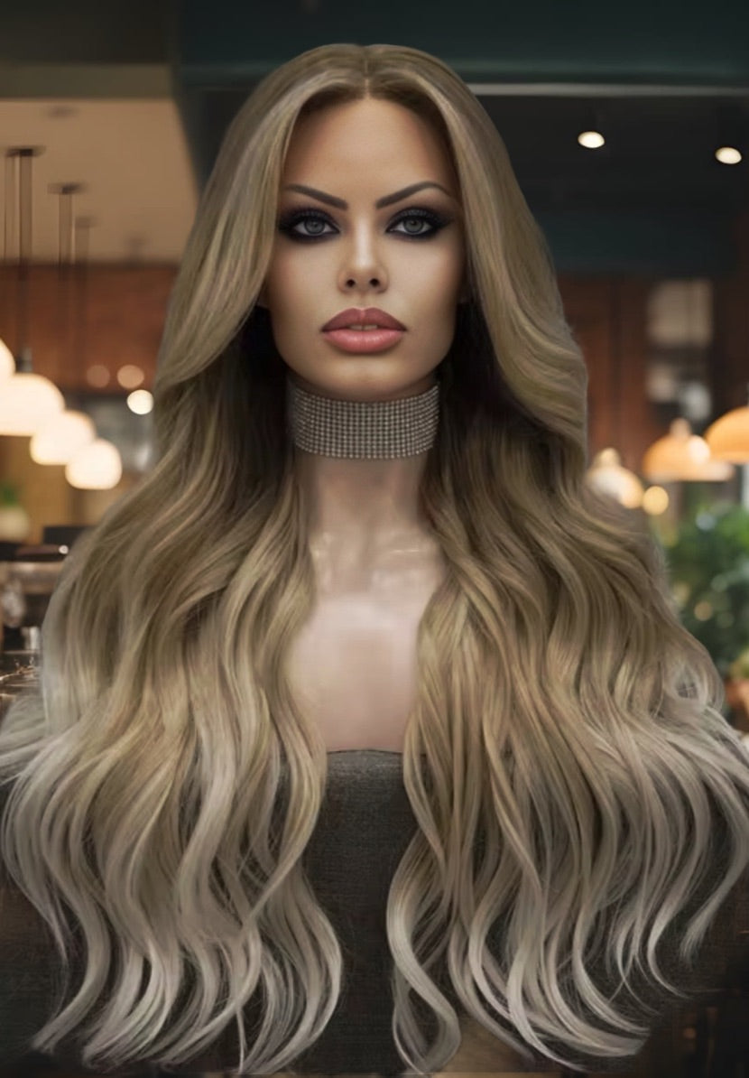 Introducing MARSHA- your new go-to for effortless, stylish hair. Made with premium heat resistance synthetic fiber, this 26 inch lace front piece boasts stunning blonde mix with low lights for a natural and beautiful look. With adjustable straps and a standard cap size, MARSHA is ready to be shipped directly to you from our trusted supplier.