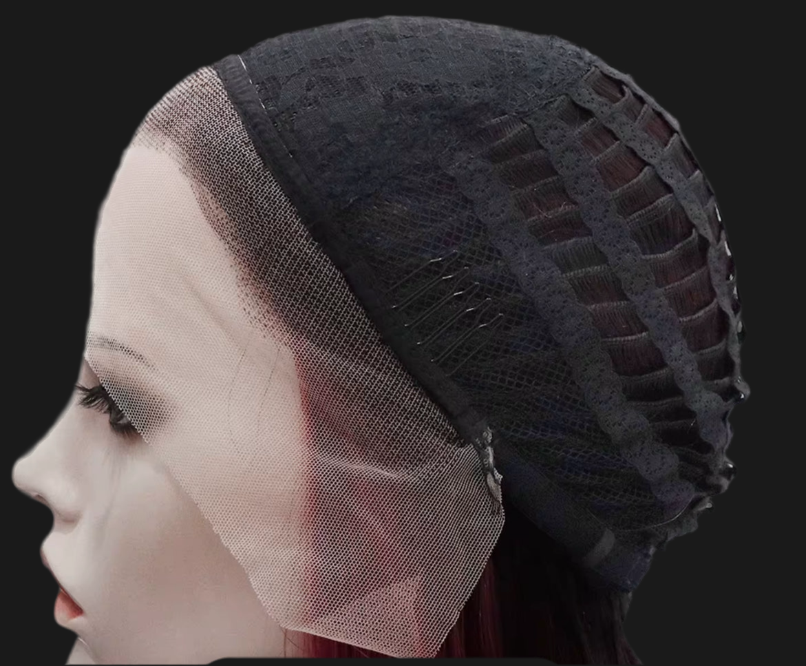 Transform your look with MYSTIC WINE, featuring a stunning deep red and plum color with subtle low lights and a realistic root. Its 13 x 2 lace front and adjustable straps ensure a perfect fit, while the premium heat-resistant synthetic fiber allows for versatile styling. Get ready to turn heads with this 26-inch loose curl beauty.
