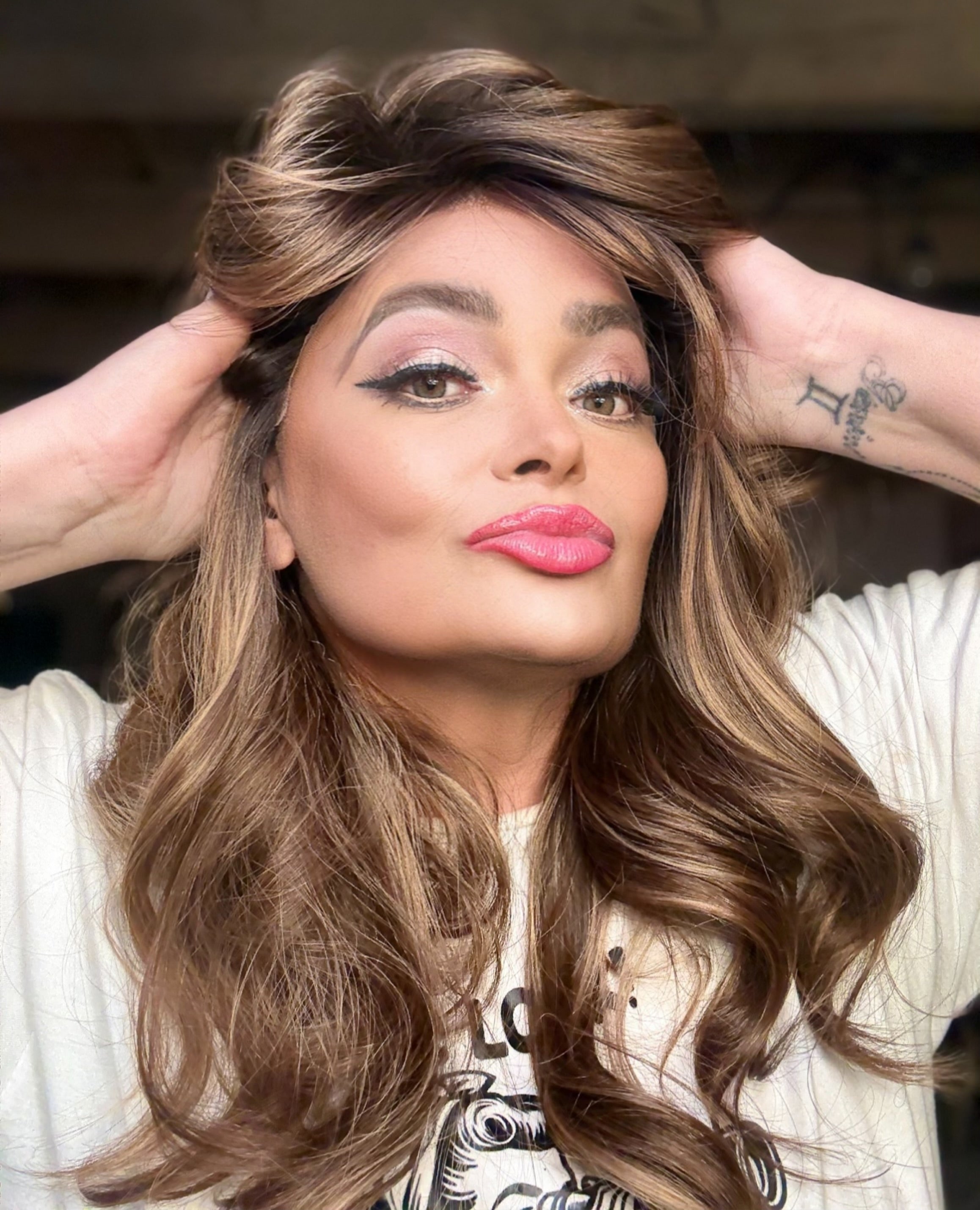 Introducing NEVADA, a stunning 13x4 lace front wig with a free part for ultimate styling freedom. Made with premium heat-resistant synthetic fiber, this 22-inch wig features loose pearl curls, layered bangs, and a beautiful brown mix color. The adjustable straps and standard cap size ensure a comfortable fit. Expertly crafted by Custom Martini Wigs.