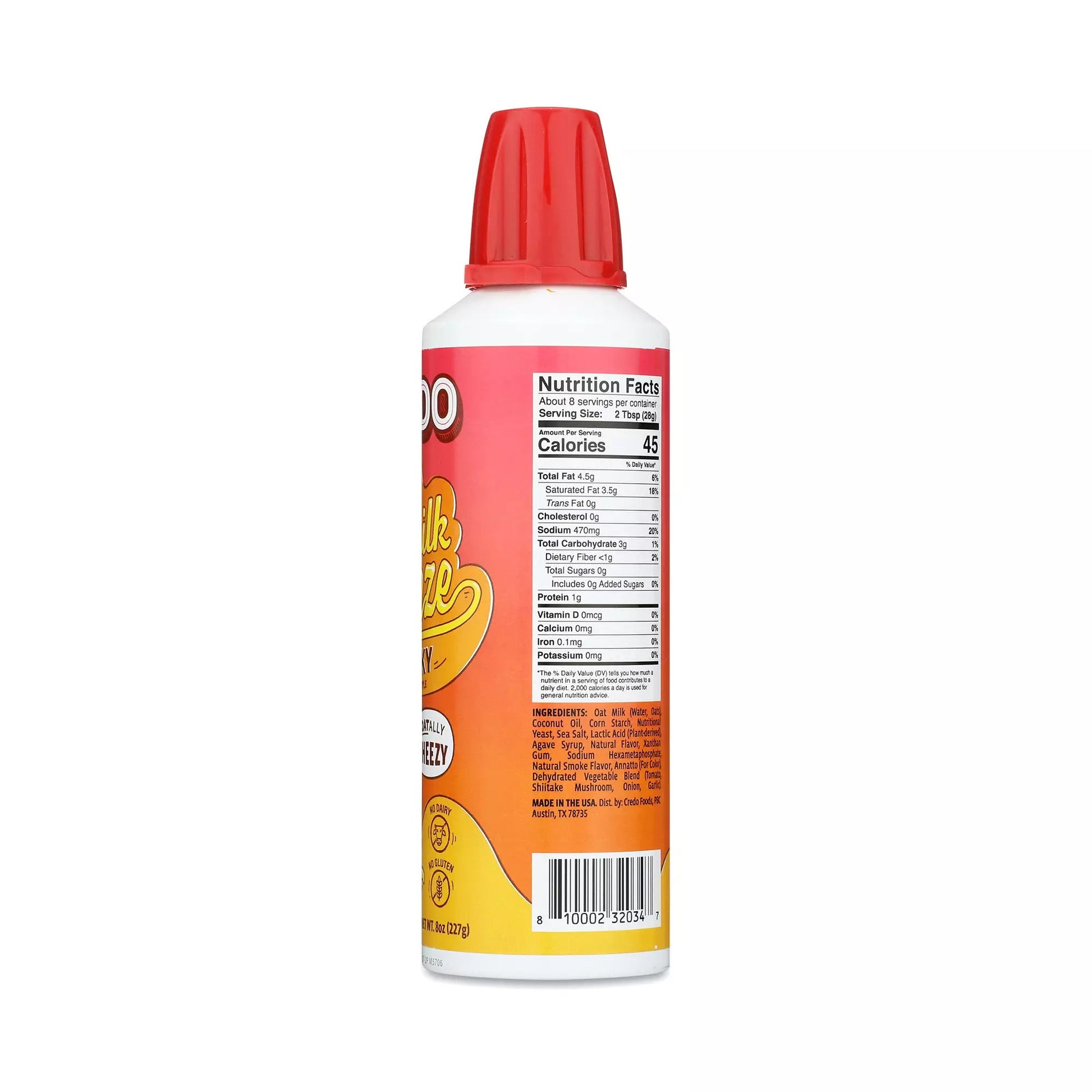 Perfect for spraying on your favorite crackers, hot dogs, burgers, or baked potatoes, this dairy-free cheeze is as versatile as it is delicious. Whether you’re snacking or adding a creamy layer to your meal, Credo’s Oat Milk Cheeze is the perfect way to enjoy the cheesy taste you love, without the dairy.