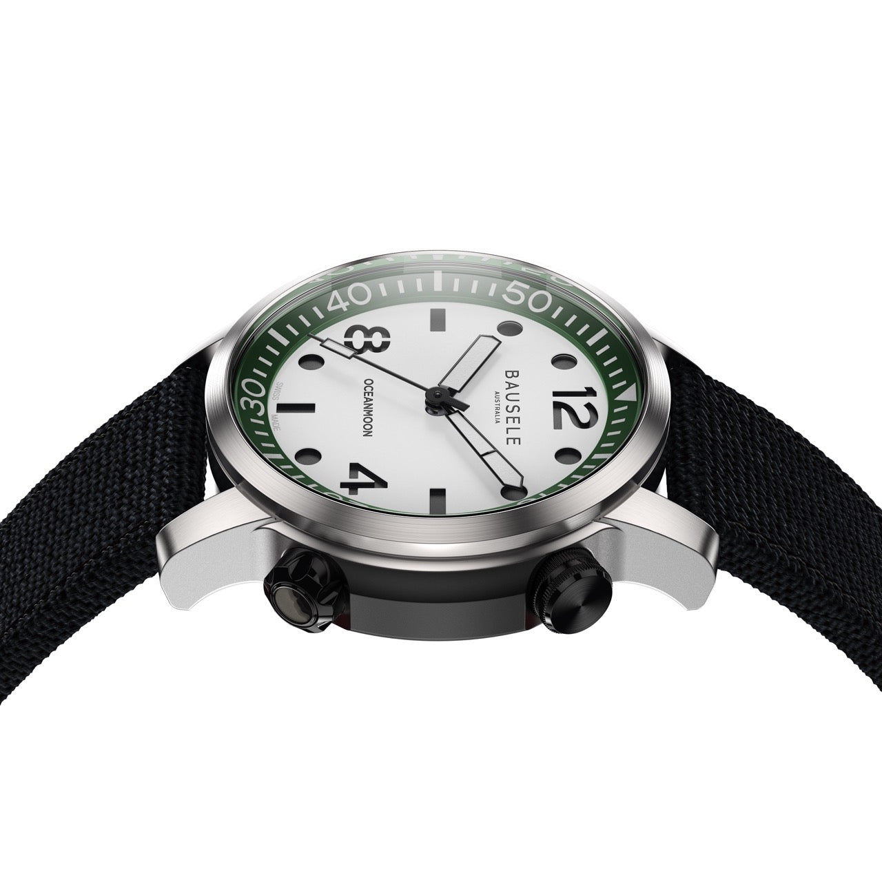 The striking dial of the OMV Algae Court reminds us to empty our minds, slow down our breathing and focus on the present. Inspired by the serene coastal landscapes of Australia, the Algae Court captures the essence of oceanic tranquility. Its pristine white hue mirrors the purity of sun-kissed shores, inviting a sense of calm for a deeper connection.