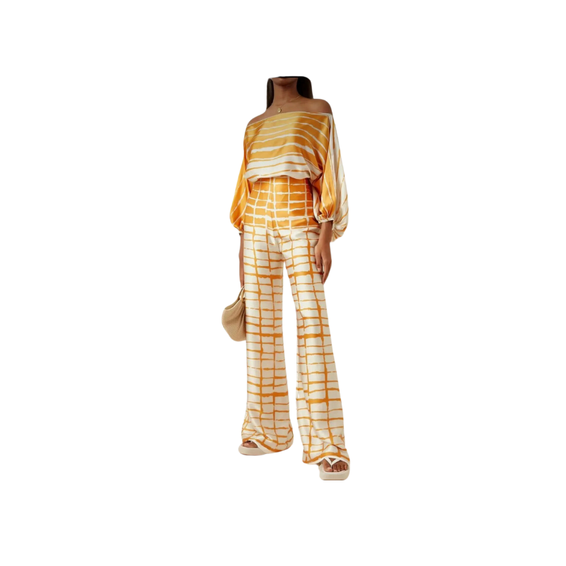 Off Shoulder Long Sleeve Shirt and Wide Leg Pant