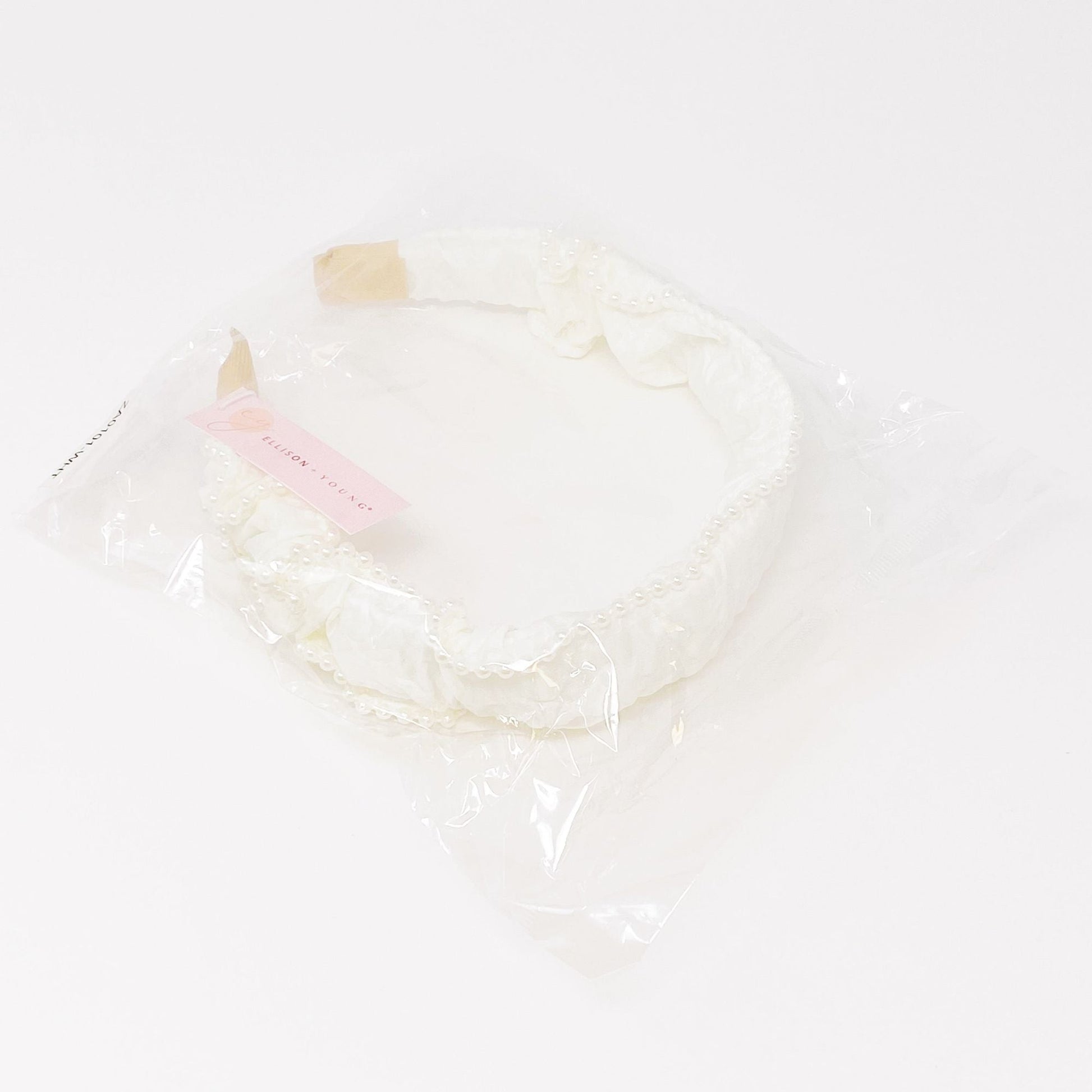 This headband is delicately scrunched and embellished with small pearl beads all around, absolutely gorgeous! Textured silky fabric, soft edges for comfy wear, just great details all around! Great for everyday fun, wedding, or any occasions.