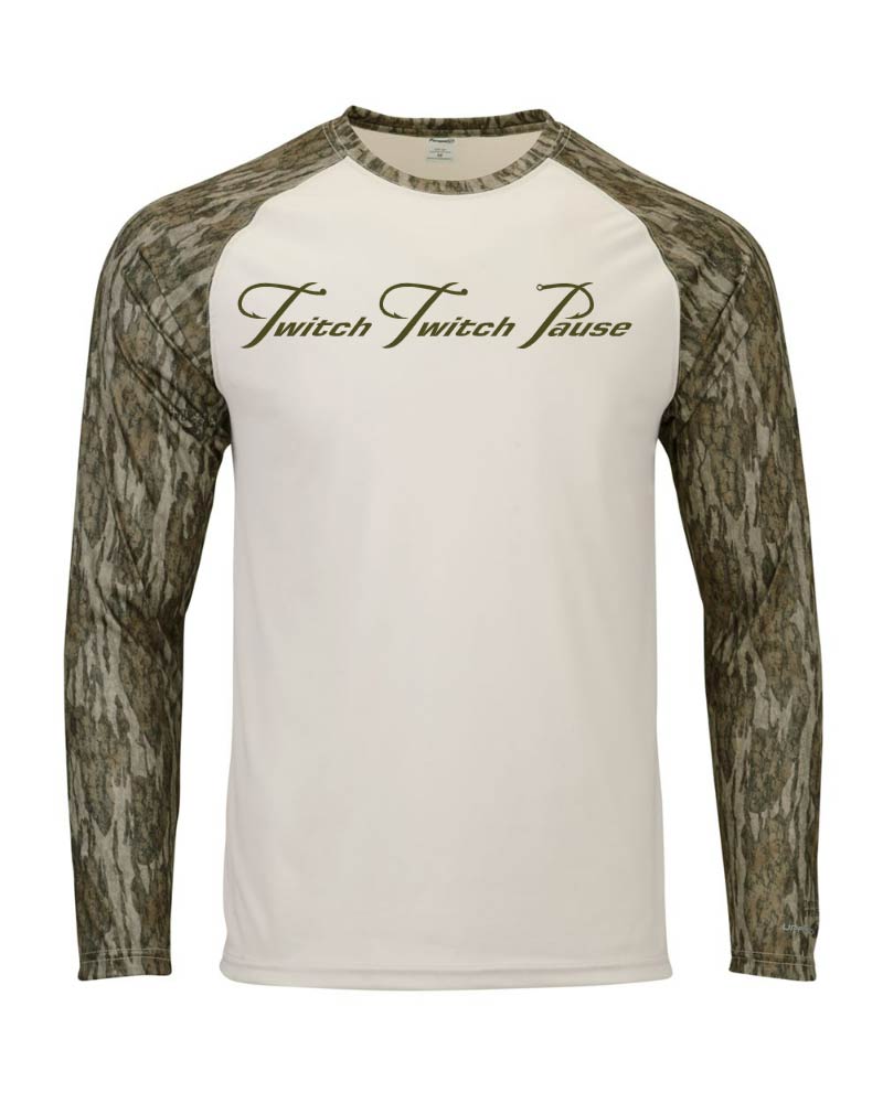 Stay cool and dry while looking your best when wearing this UPF 50+ performance fishing shirt from TTP Outdoors. The sleeves and neck feature Mossy Oak Bottomland with the front and back of the shirt being sand-stone. The back of this shirt features a Patriotic Popper in dark olive with our company logo embedded in the design. Then chest features Twich Twich Pause company logo in dark olive. Features · Long Sleeve hoodie with Mossy Oak Bottomland pattern. · Chest and back screen printed logo & design · UV 50+ Sun Protection · Moisture wicking · Antimicrobial & wrinkle resistant finish Fabric · 3.5 oz  · 100% Microfiber performance polyester Fit · Regular stretch fit Care · Turn Inside out and machine wash cold · Wash with like colors · Do not bleach · Hang dry or tumble and Cool iron, do not iron where decorated  Note: Actual shades and colors of some products may vary slightly from pictures on this website. We do our very best to represent each product accurately.