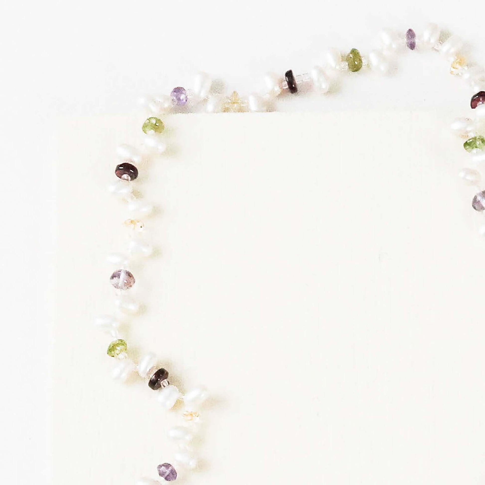- 45 inches of freshwater bead pearls mixed with multi-colored gemstones