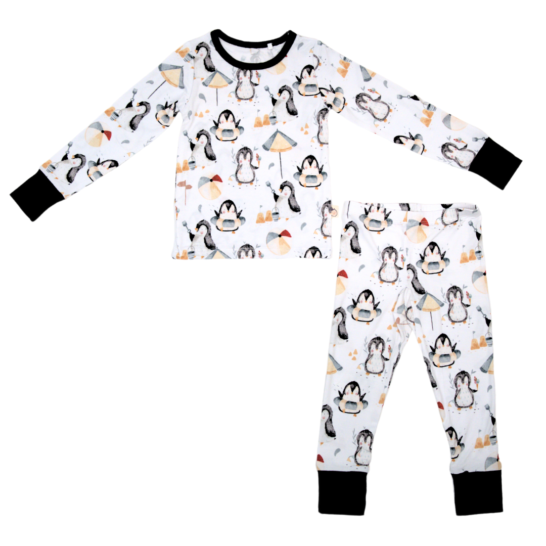 Snuggly Figs bamboo PJs, made from our custom milled SNUGLUXE™ bamboo fabric, are your growing baby and toddlers’ best friend. Enjoy the snuggly and buttery feel on your little ones while they snooze through the night comfortably. Our PJ sets are super soft and comfortable for both summer and winter nights. Our Penguin Picnic PJ sets are available in sizes 2T to 7T.