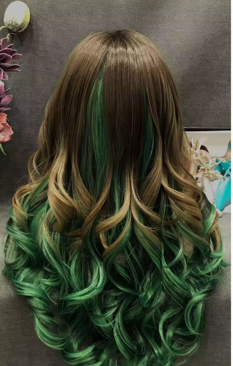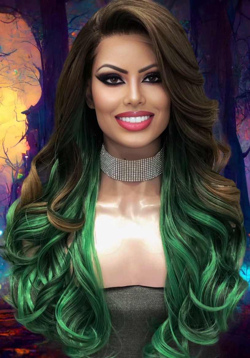 Introducing PHANTOM BEAUTY - the ultimate lace front wig for stylish and versatile looks. Featuring a free part and premium heat resistance synthetic fiber, this 24 inch loose curl wig in stunning dark brown with green low lights and ends is perfect for any occasion. With an adjustable strap and standard cap size, you can achieve the perfect fit.
