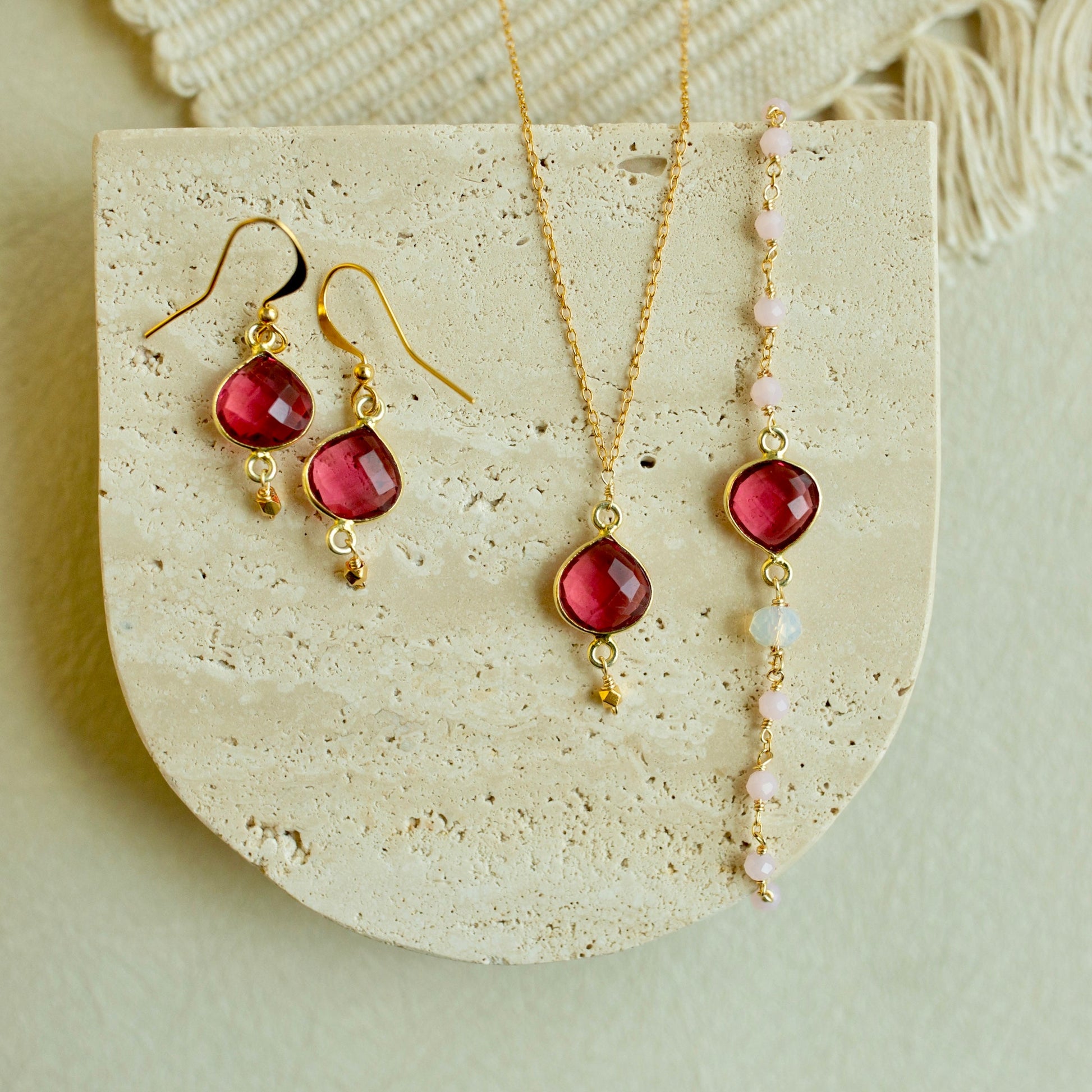 Featuring a heart-shaped pink tourmaline quartz gemstone, this graceful tribute to art and literature is perfect for any occasion. Handcrafted by our skilled female artisans, all Ballet Bracelets feature tarnish resistant chains made from 14k gold plated Italian fine silver. The fully adjustable design ensures a perfect fit for any wrist size. Proudly made in the USA.