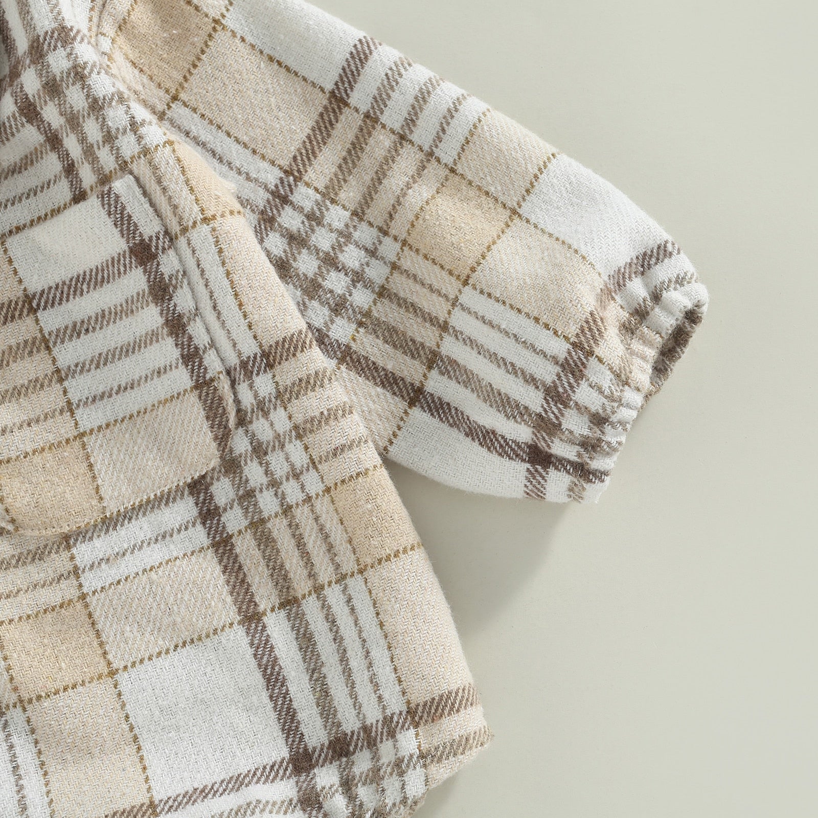 Plaid Baby Boy Long Sleeve Button Vintage Romper With Pocket