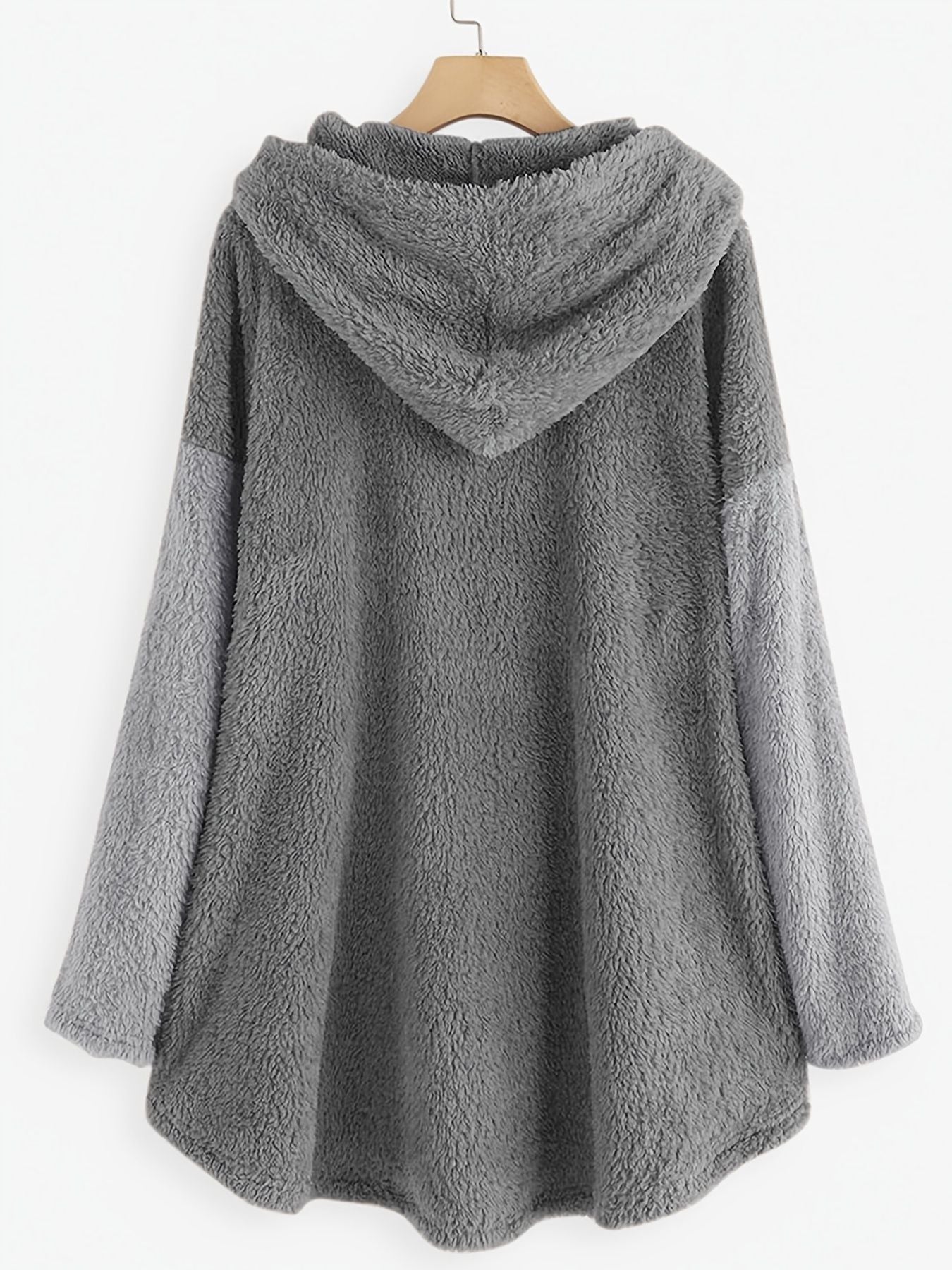 Plus Size Cartoon Puppy Print Colorblock Zip Up Hoodie Fuzzy Coat; Women's Plus Slight Stretch Casual Coat