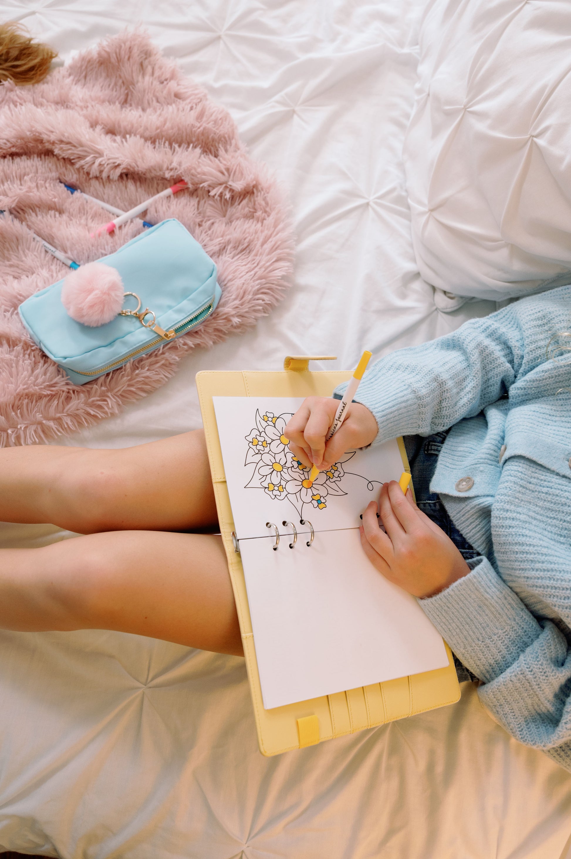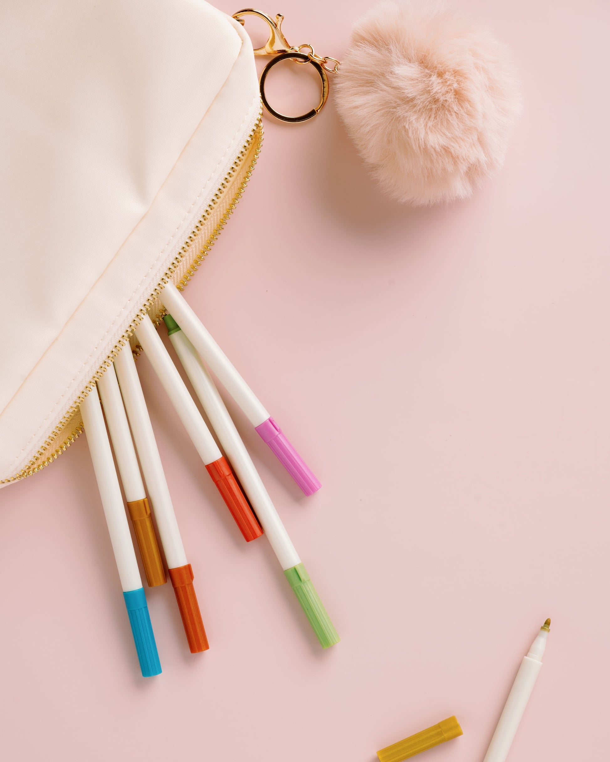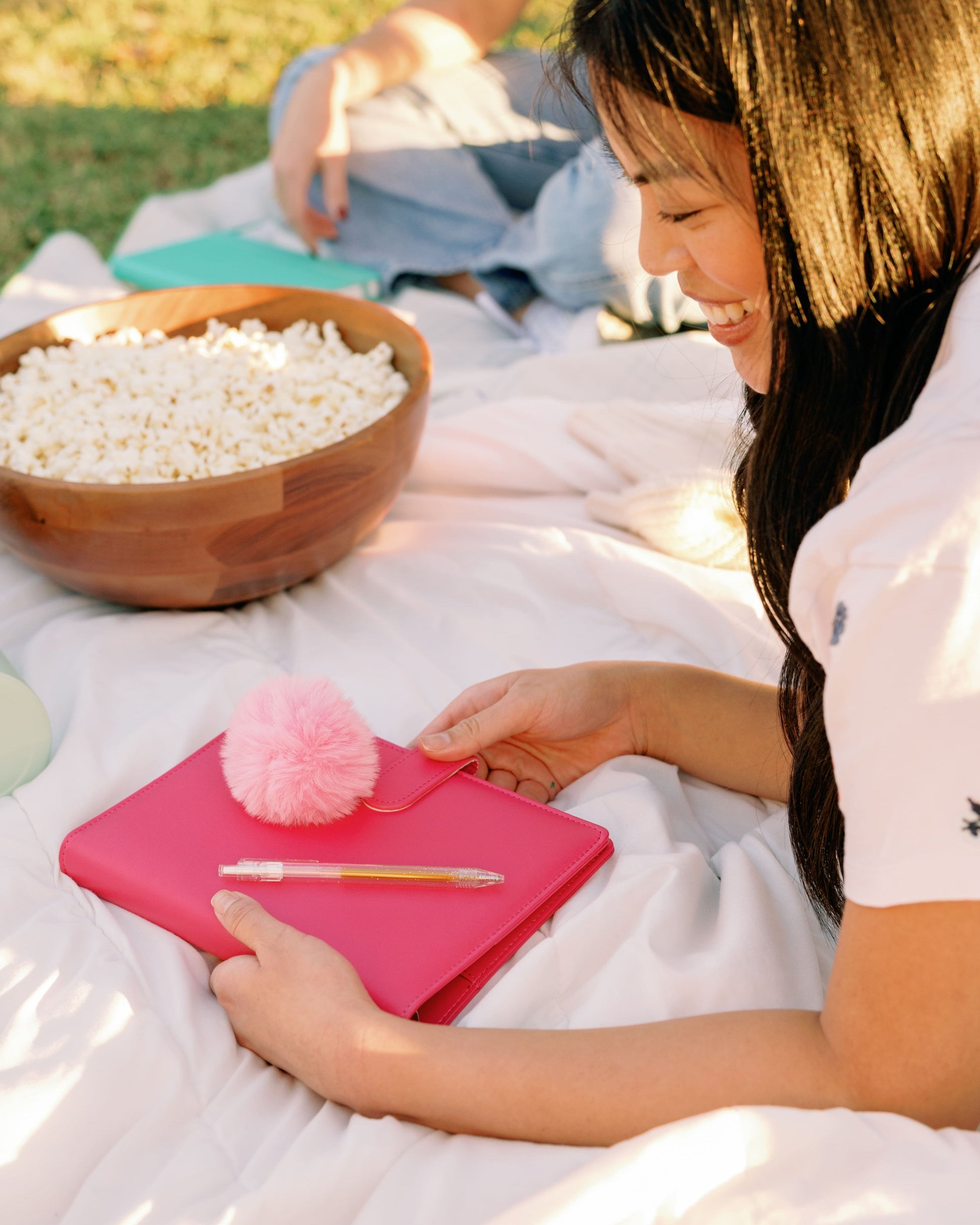 A fuzzy Pom Pom Keychain to accessorize your journal, wallet, tote bag, and more.