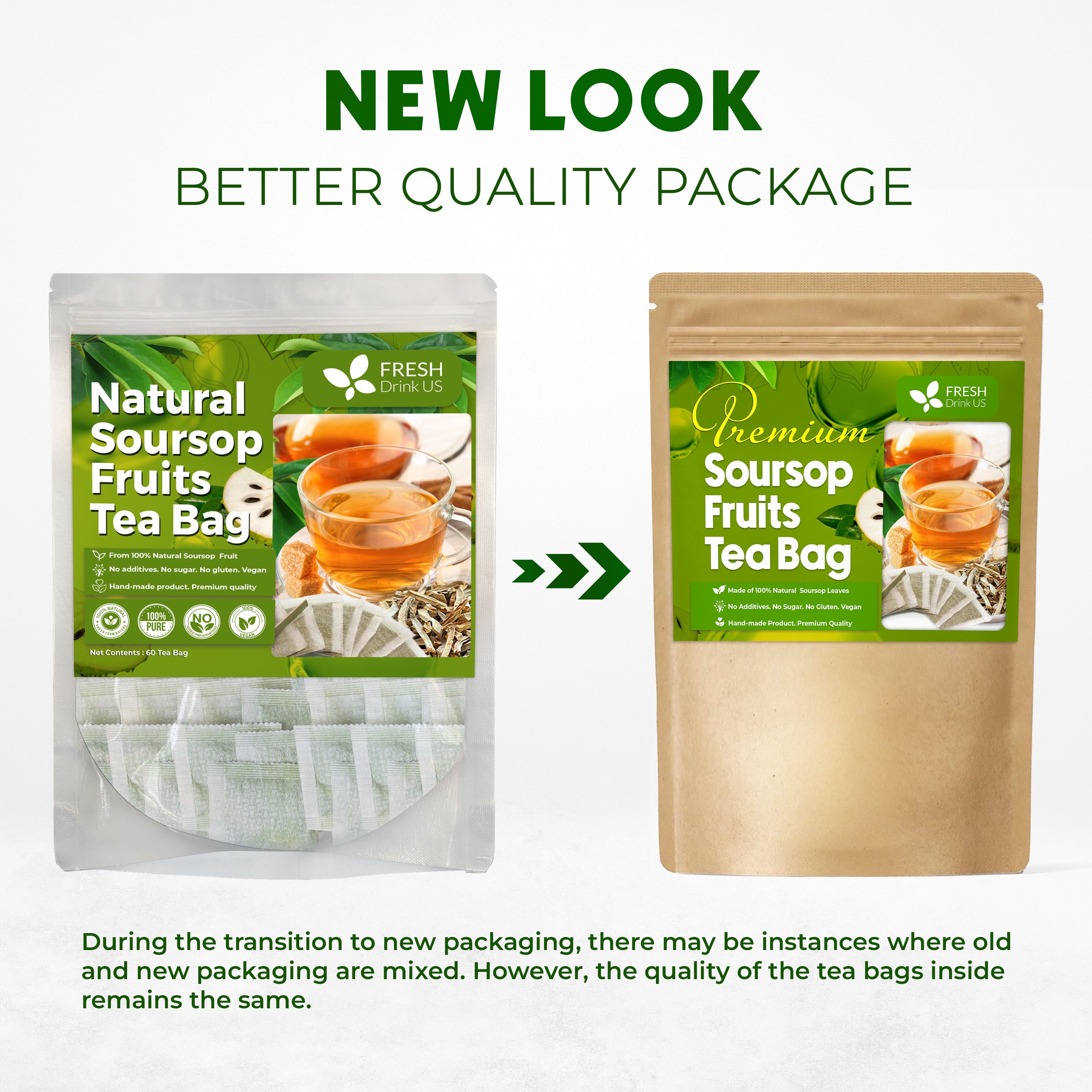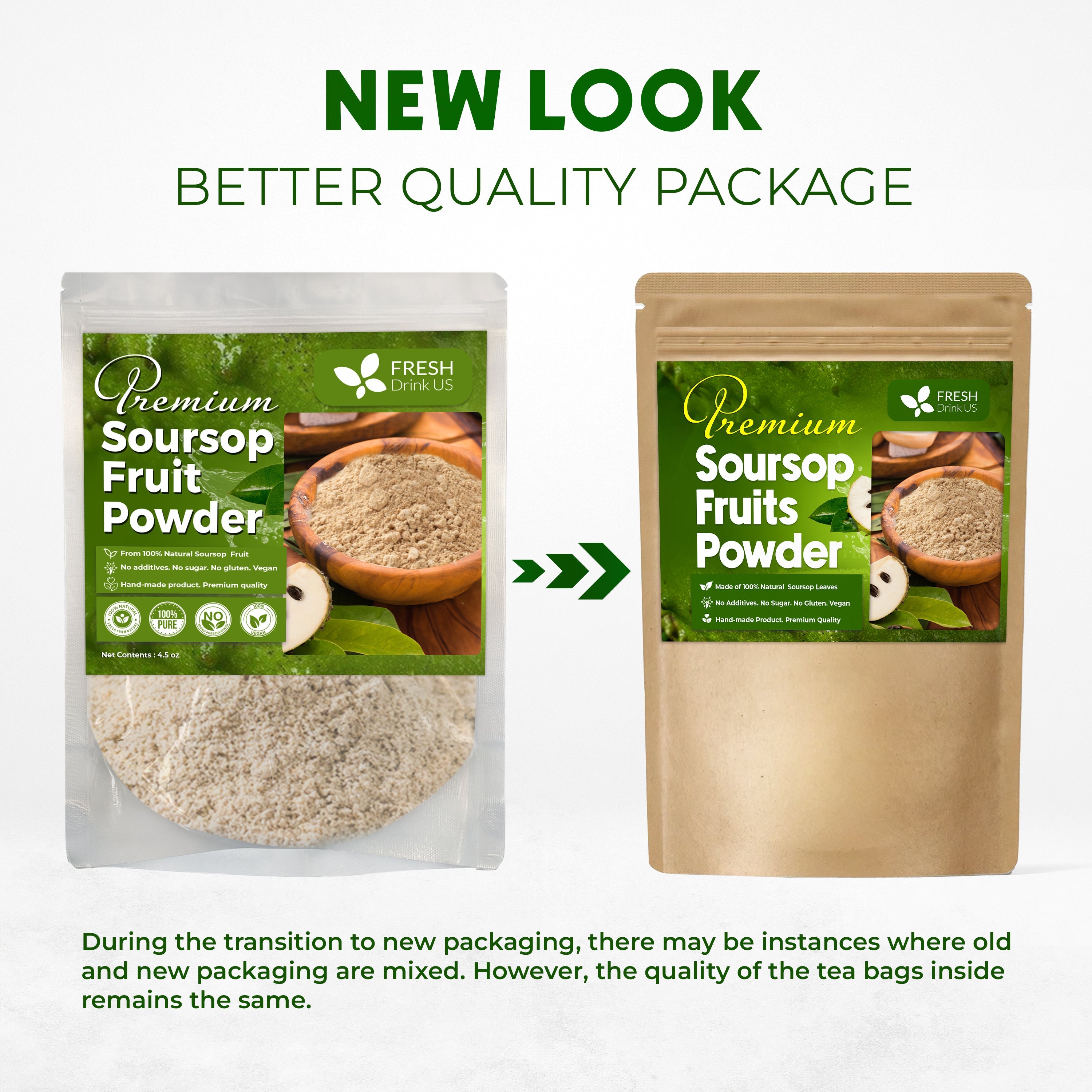 Premium Soursop Graviola Fruit Tea Bags, Tea Powder, 100% Natural and Pure from Soursop Fruits, Handmade, Made With Natural Materials-Corn Fiber Tea Bag, Sugar/Caffeine/Gluten Free, Hoja Guanabana Tea