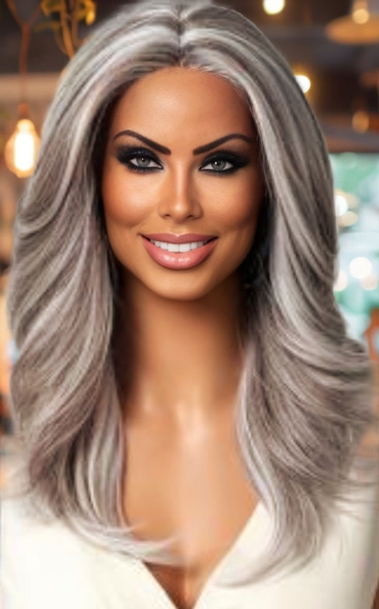 Experience effortless style with the RACHELLE lace front wig. Made with premium heat resistant synthetic fiber, this 14 inch wig features layers for a natural look. The free part allows for customizable styling and the adjustable straps ensure a comfortable fit. Available in a chic gray and platinum blend, shipped straight from the manufacturer for your convenience.