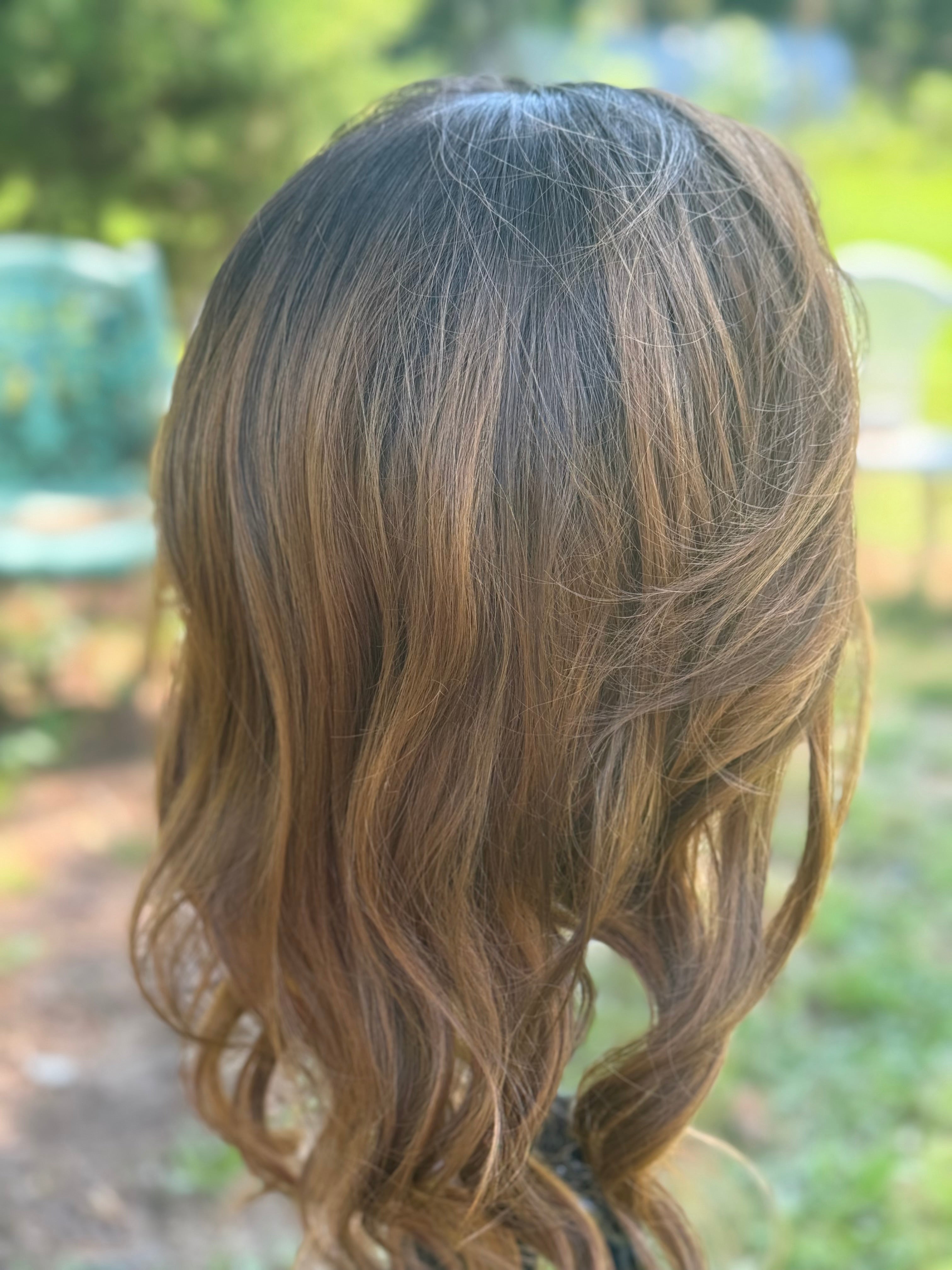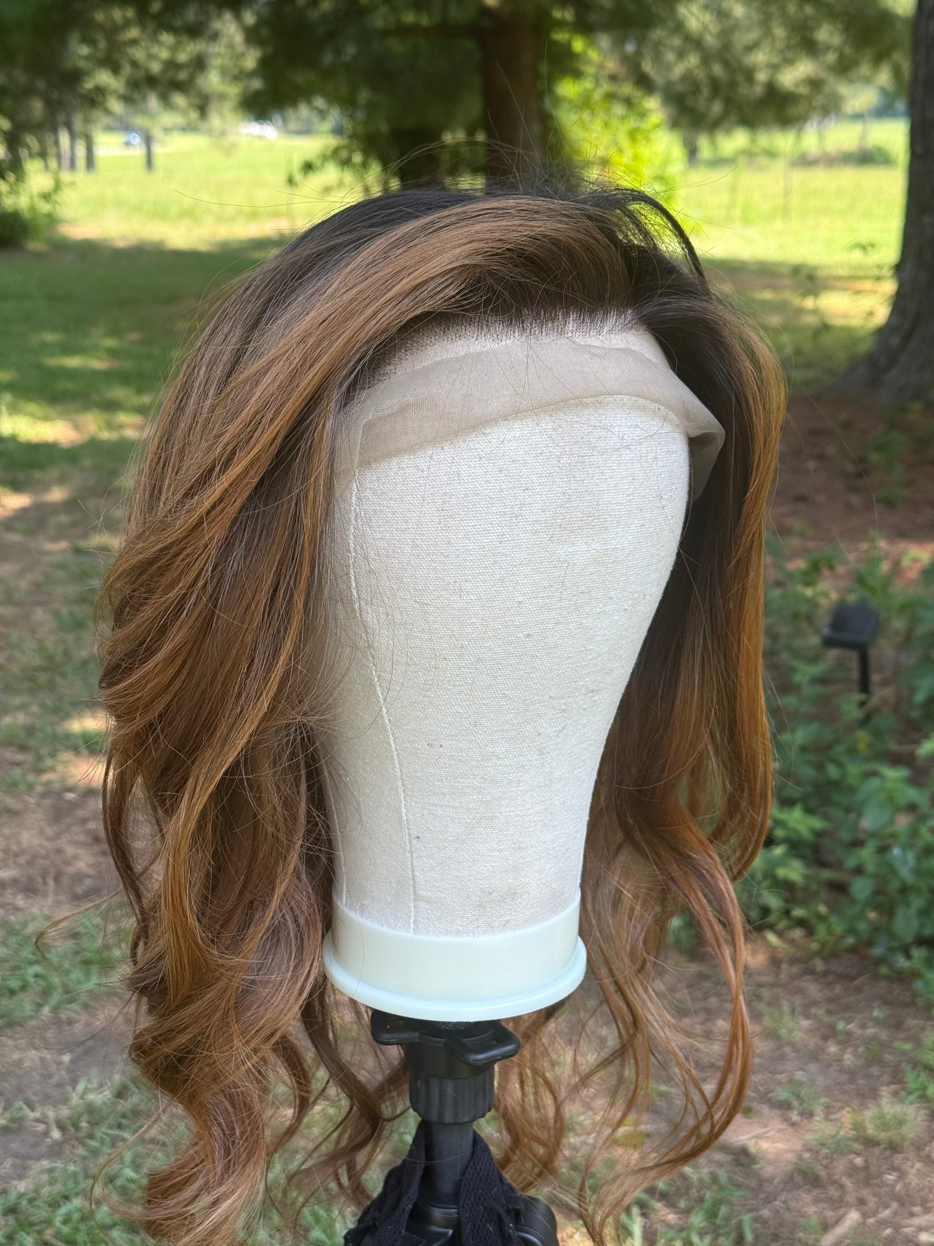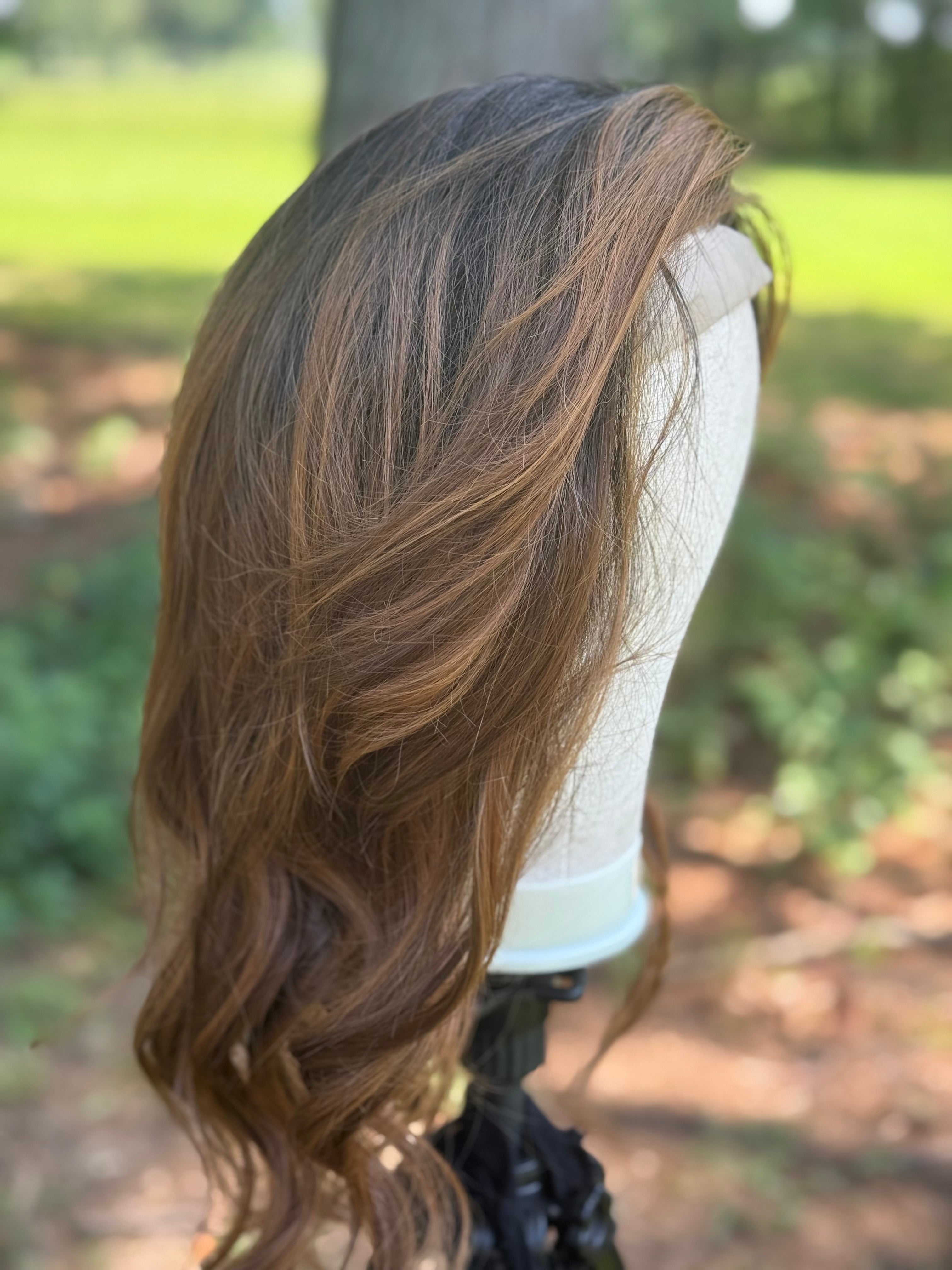 Experience the RAINE 13x4 Luxe Lace Front wig, crafted with premium heat-resistant Futura synthetic fiber for durability and styling versatility. Featuring a 24" loose curl with light layering, this wig offers a natural free part and stunning copper color with darker rooting for depth. Designed with adjustable straps and a standard cap size, it ensures a secure, comfortable fit. Expertly customized by WBR, RAINE combines style and quality for a flawless, sophisticated look.