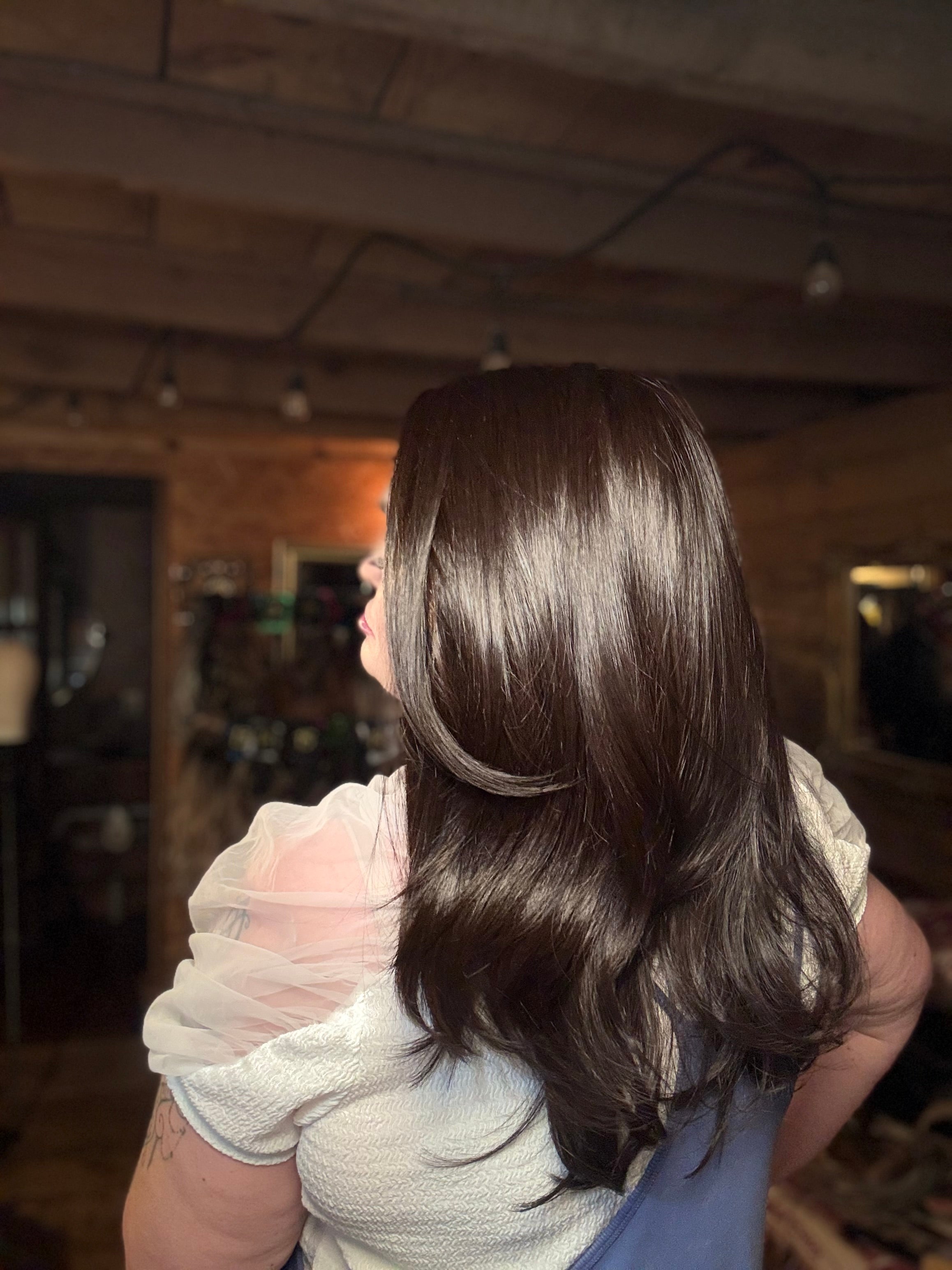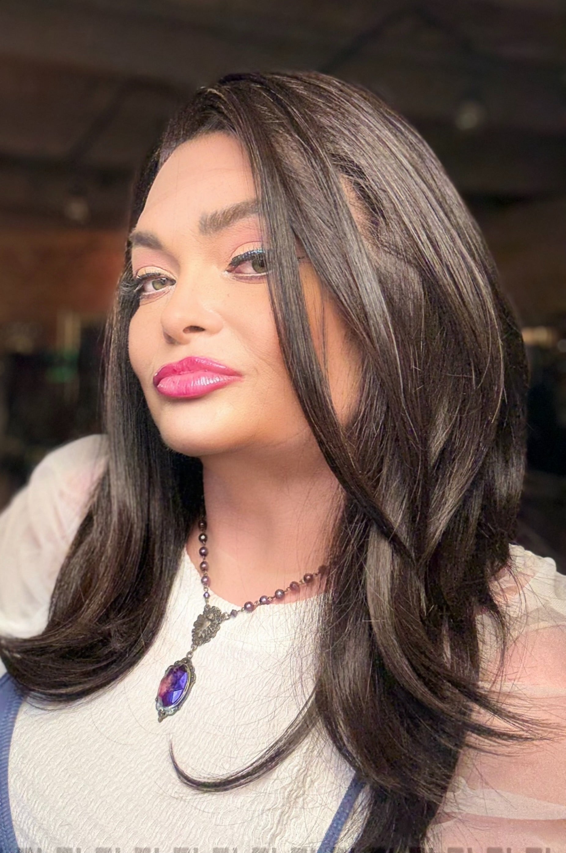 RAVEN is the top of the line wig with a 13 x 6 luxe lace front for a natural hairline. The free part allows for versatile styling, while the premium heat resistant synthetic fiber provides durability. At 16 inches long with long layers, it's great for any left side part. The darkest brown shade is perfect for a realistic look. The adjustable straps, standard cap size, and added band ensure a comfortable fit and low density for a natural appearance.