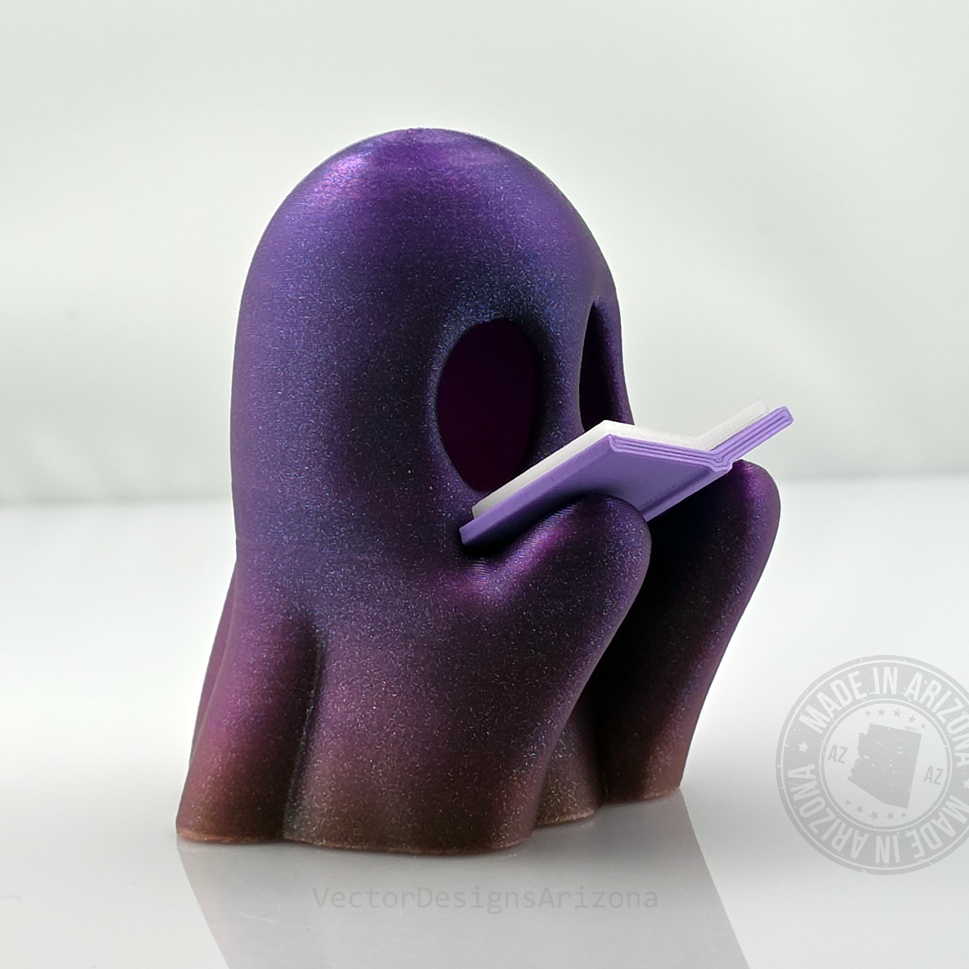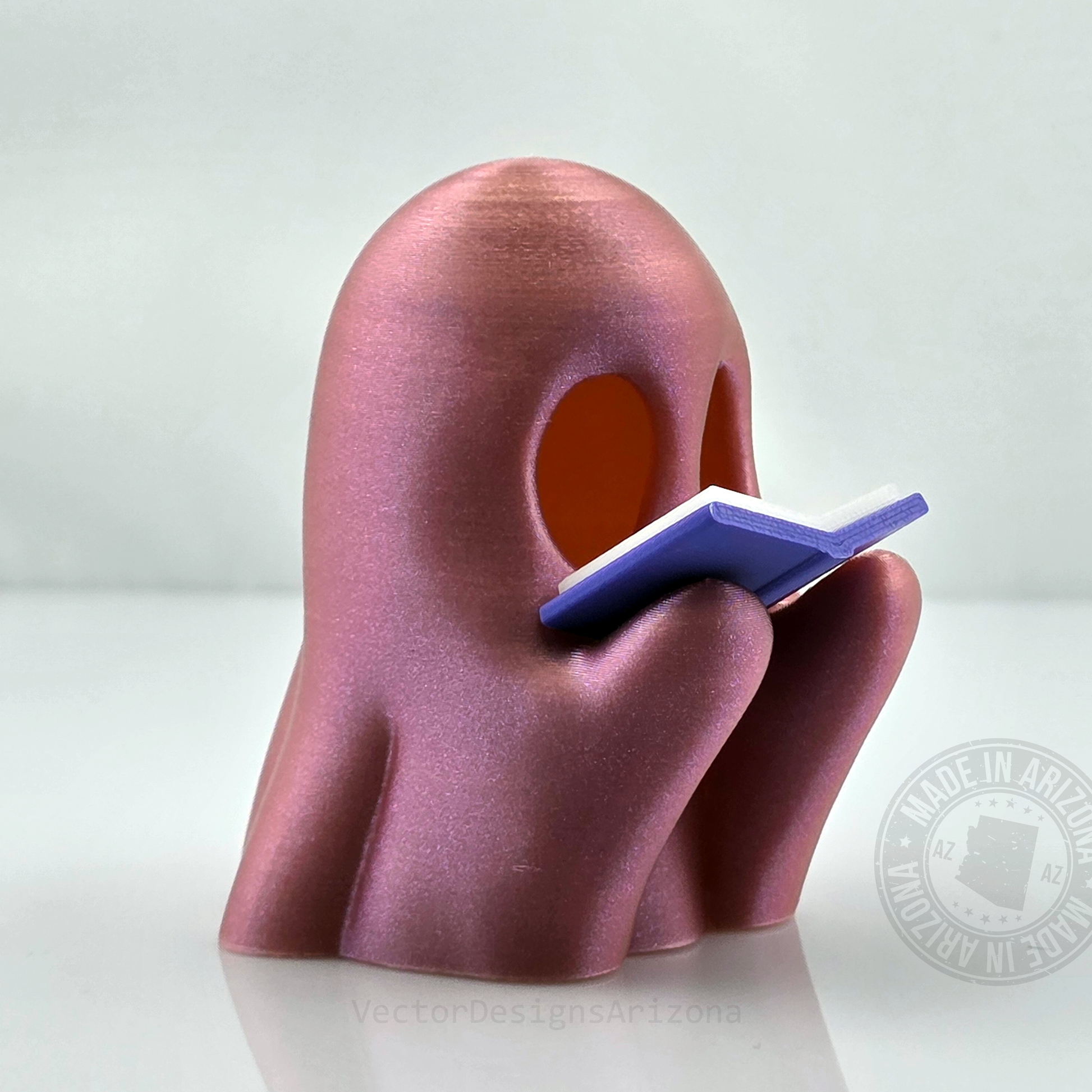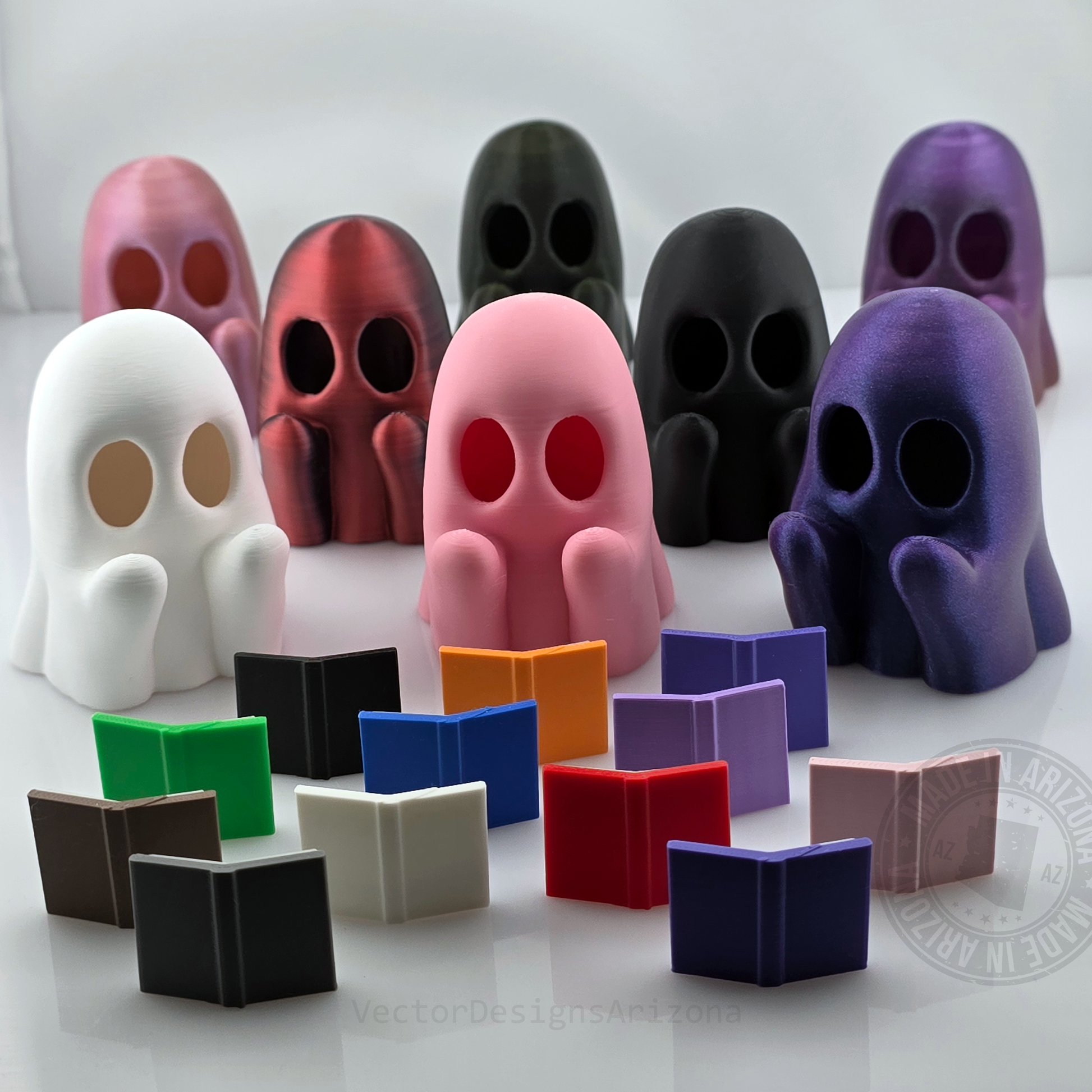 ✨ Product Features: Detachable glow-in-the-dark book accessory (choose your book color!) Now available in 8 ghost colors and 9 book colors — mix and match your perfect pairing. 3D printed using high-quality PLA, including specialty finishes like marble, mystic, and rainbow. Perfect as a Halloween night light, spooky desk buddy, or bookshelf decor. DO NOT use open flames and candles. ONLY USE Electric candles!!