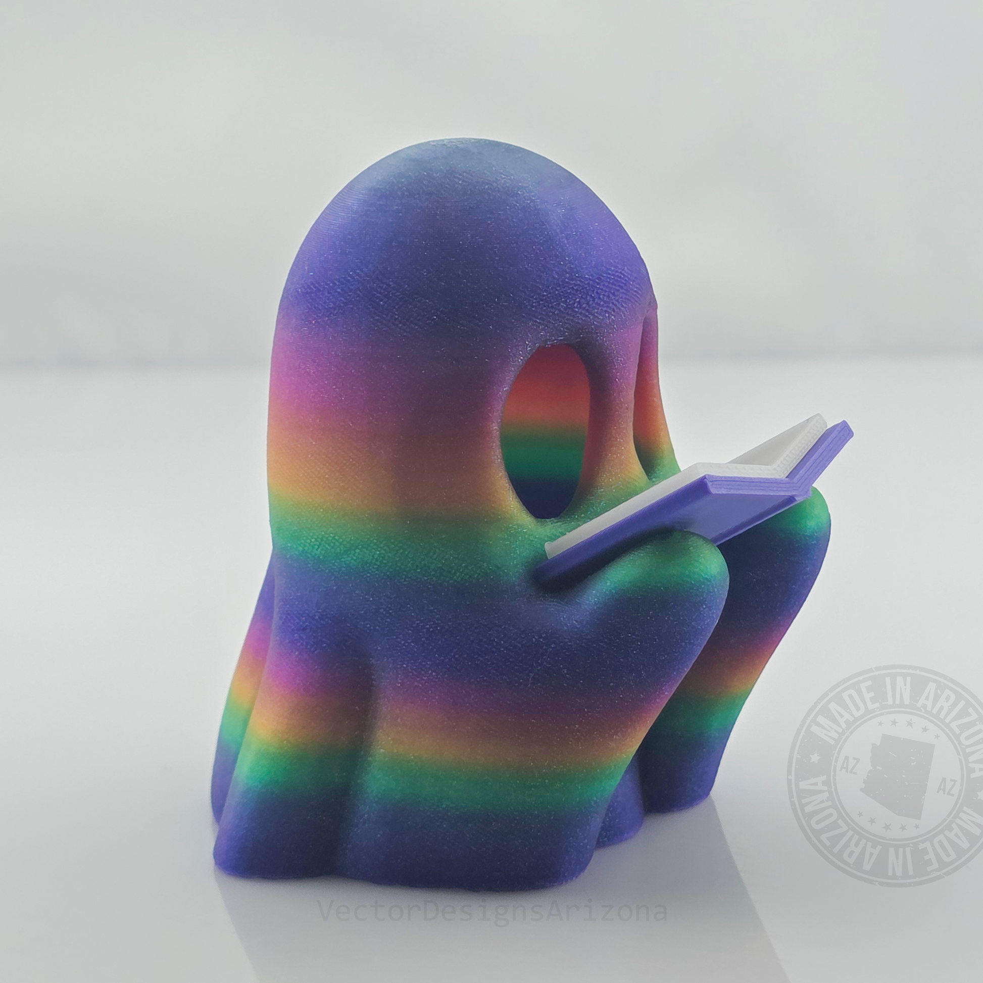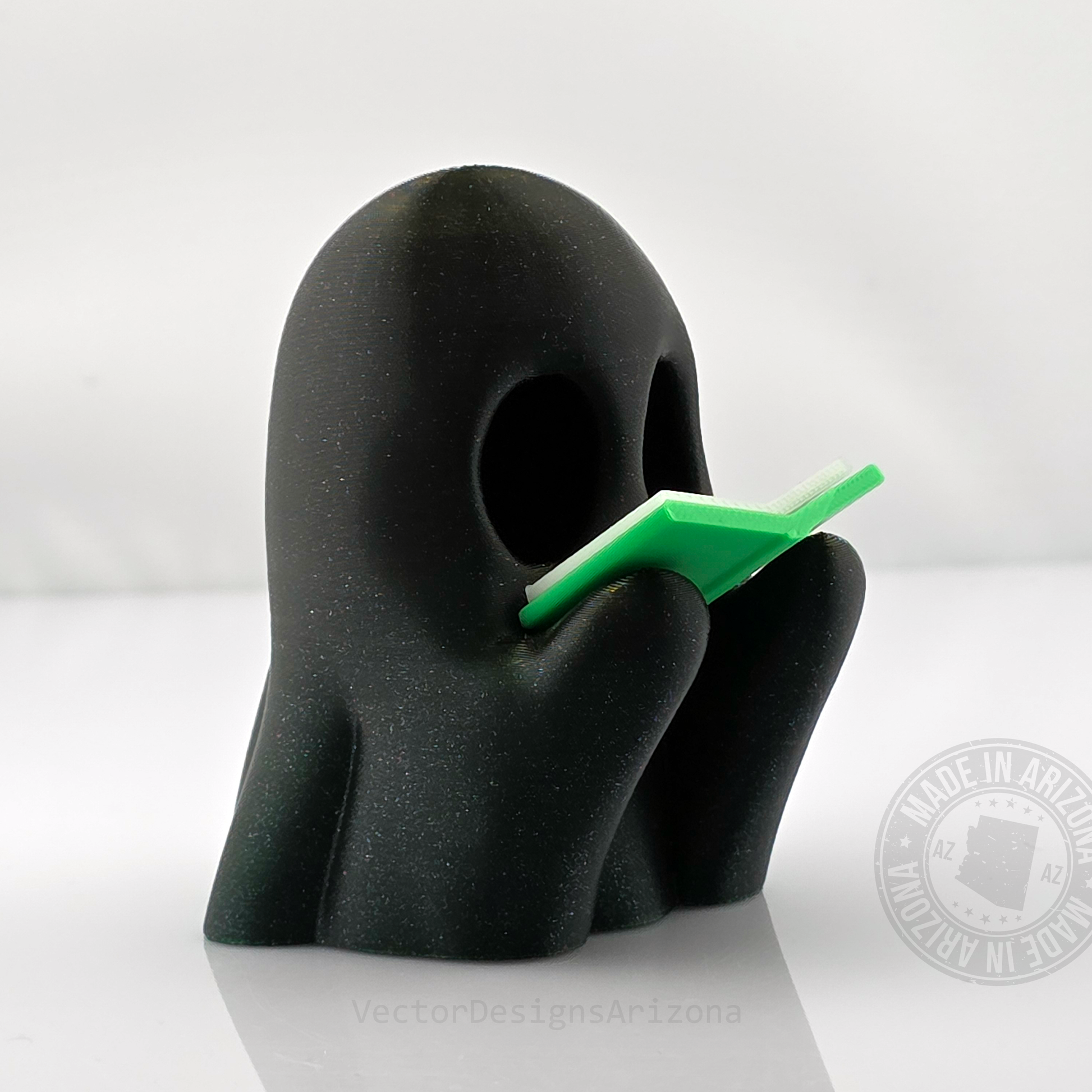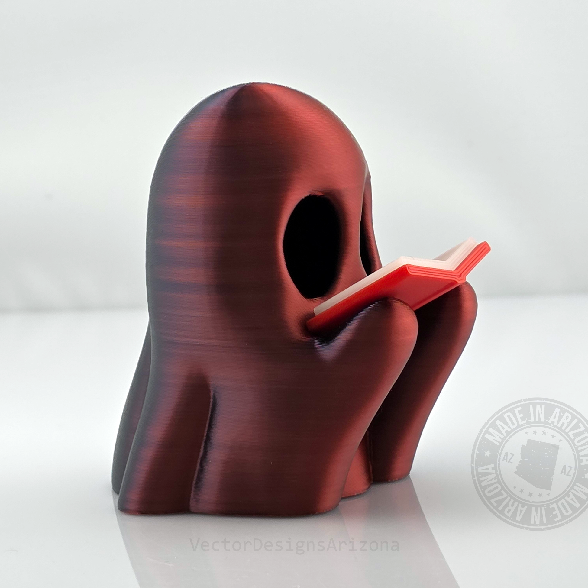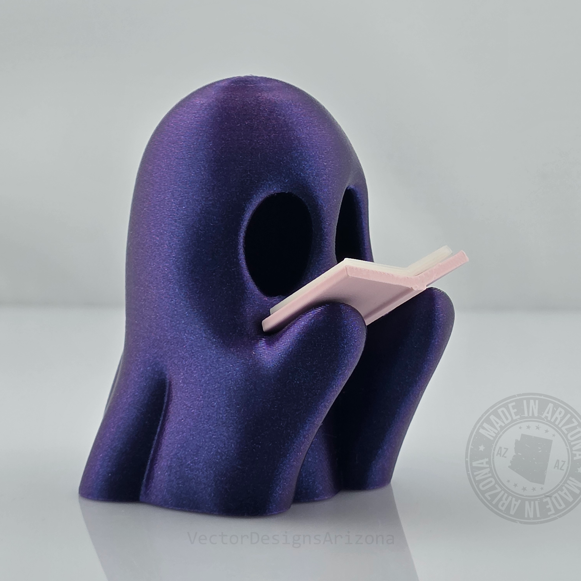 ✨ Product Features: Detachable glow-in-the-dark book accessory (choose your book color!) Now available in 8 ghost colors and 9 book colors — mix and match your perfect pairing. 3D printed using high-quality PLA, including specialty finishes like marble, mystic, and rainbow. Perfect as a Halloween night light, spooky desk buddy, or bookshelf decor. DO NOT use open flames and candles. ONLY USE Electric candles!!