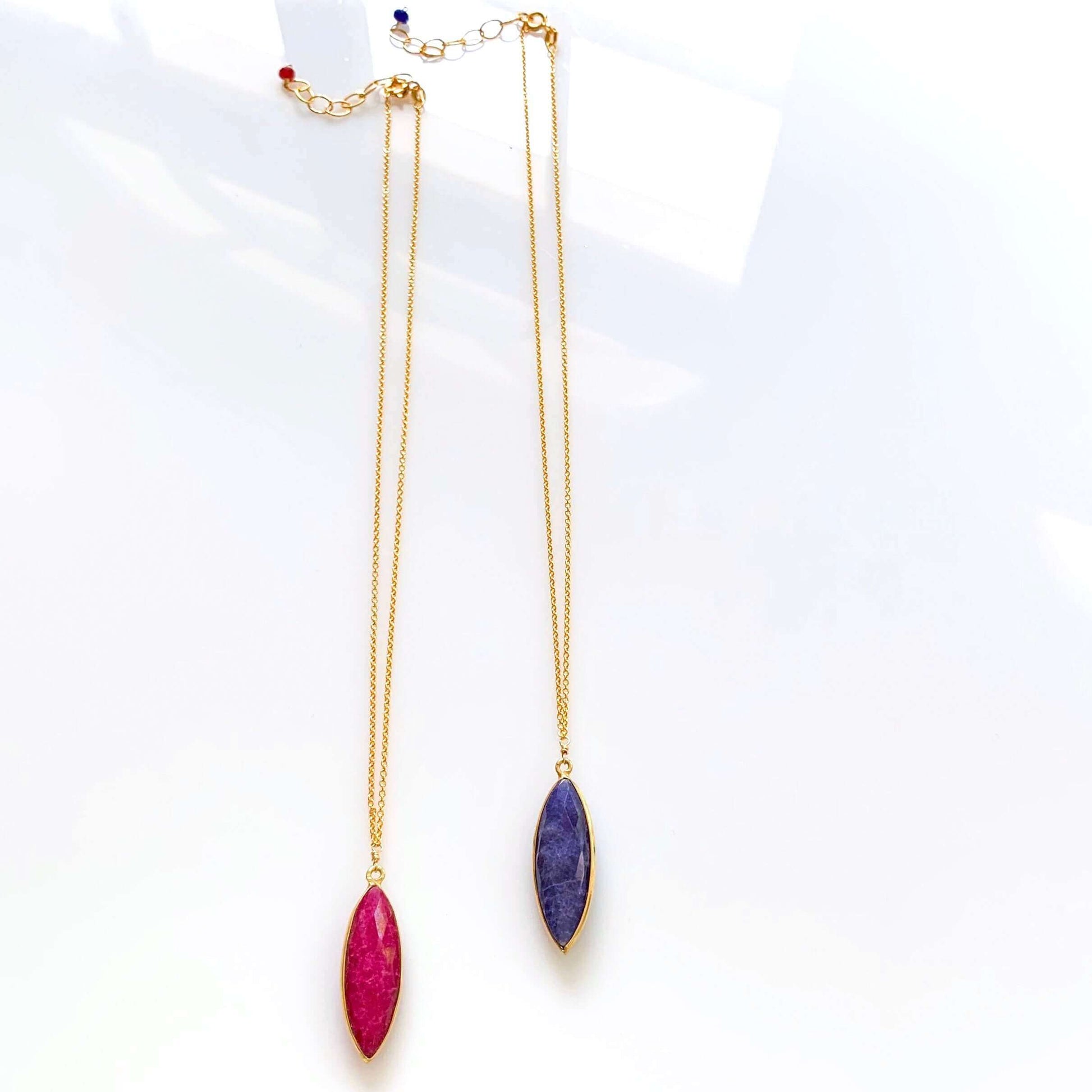 Handmade to last. Our unique gold plating technique makes our jewelry tarnish resistant. The nature of natural gemstones makes each style one-of-a-kind.