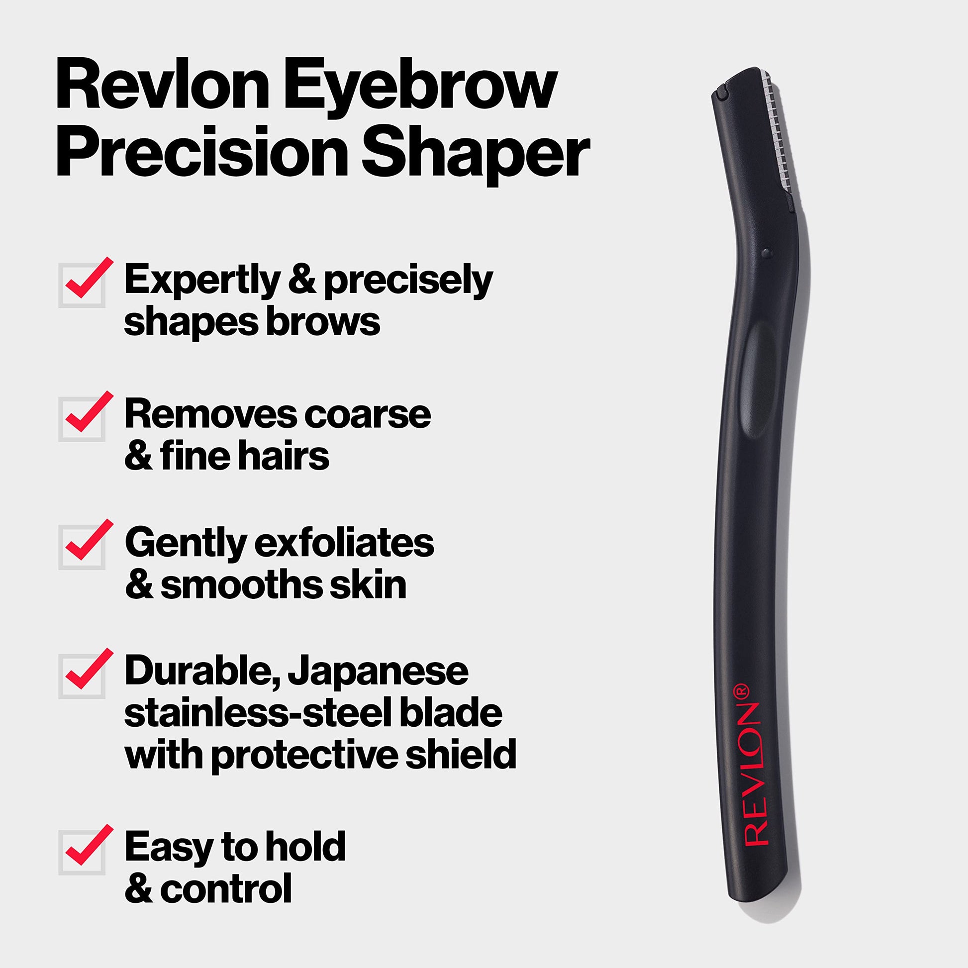Achieve flawlessly shaped brows with REVLON Eyebrow Precision Shaper (2ct)—your go-to tool for expert grooming with ultimate precision. Designed to effortlessly remove both coarse and fine hairs, this easy-to-use shaper also gently exfoliates and smooths skin for a polished finish. Featuring a high-quality Japanese stainless steel blade with a protective shield, it ensures safe, precise trimming every time. The slim, portable design makes it perfect for quick touch-ups anytime, anywhere—because perfect brows should always be within reach!