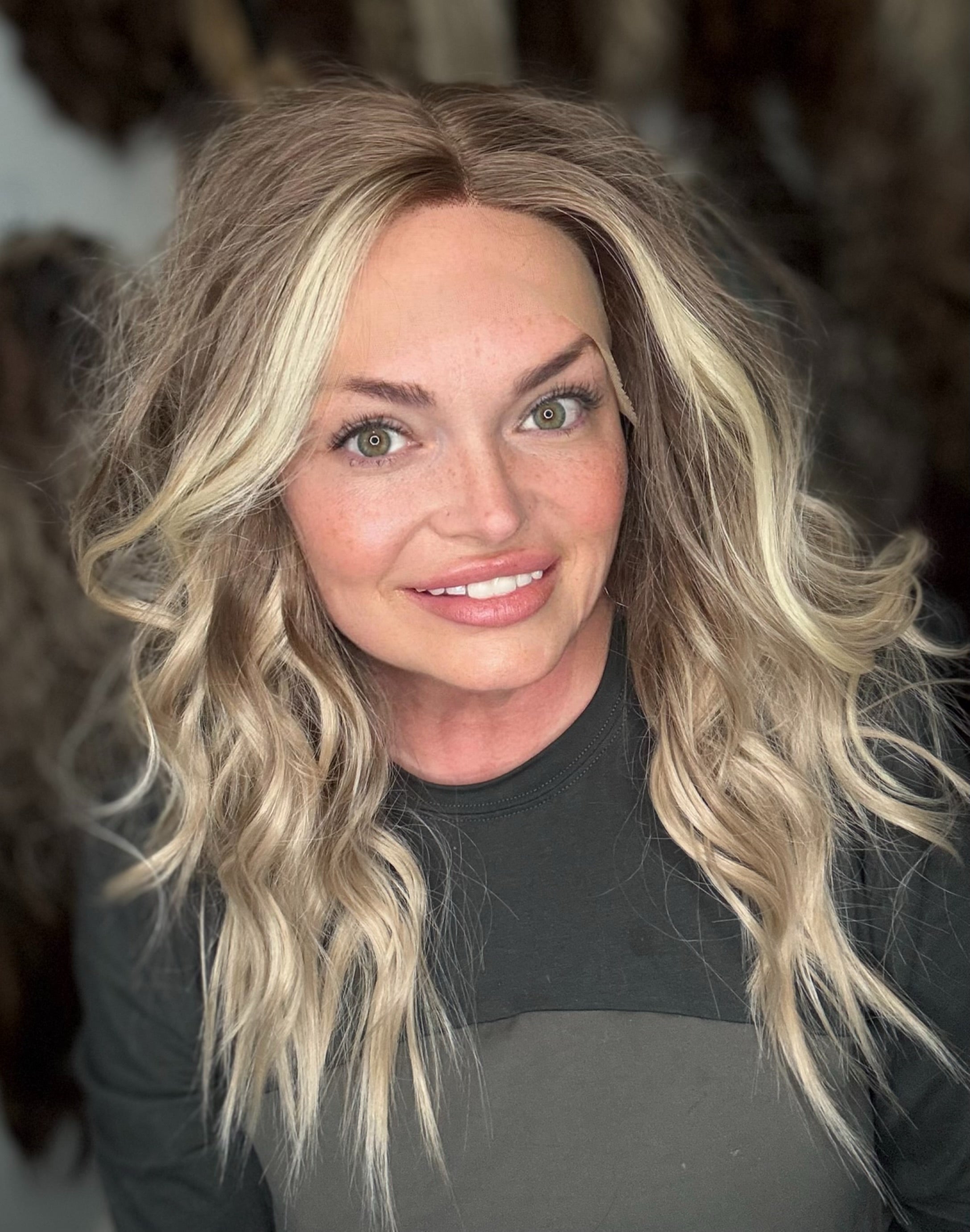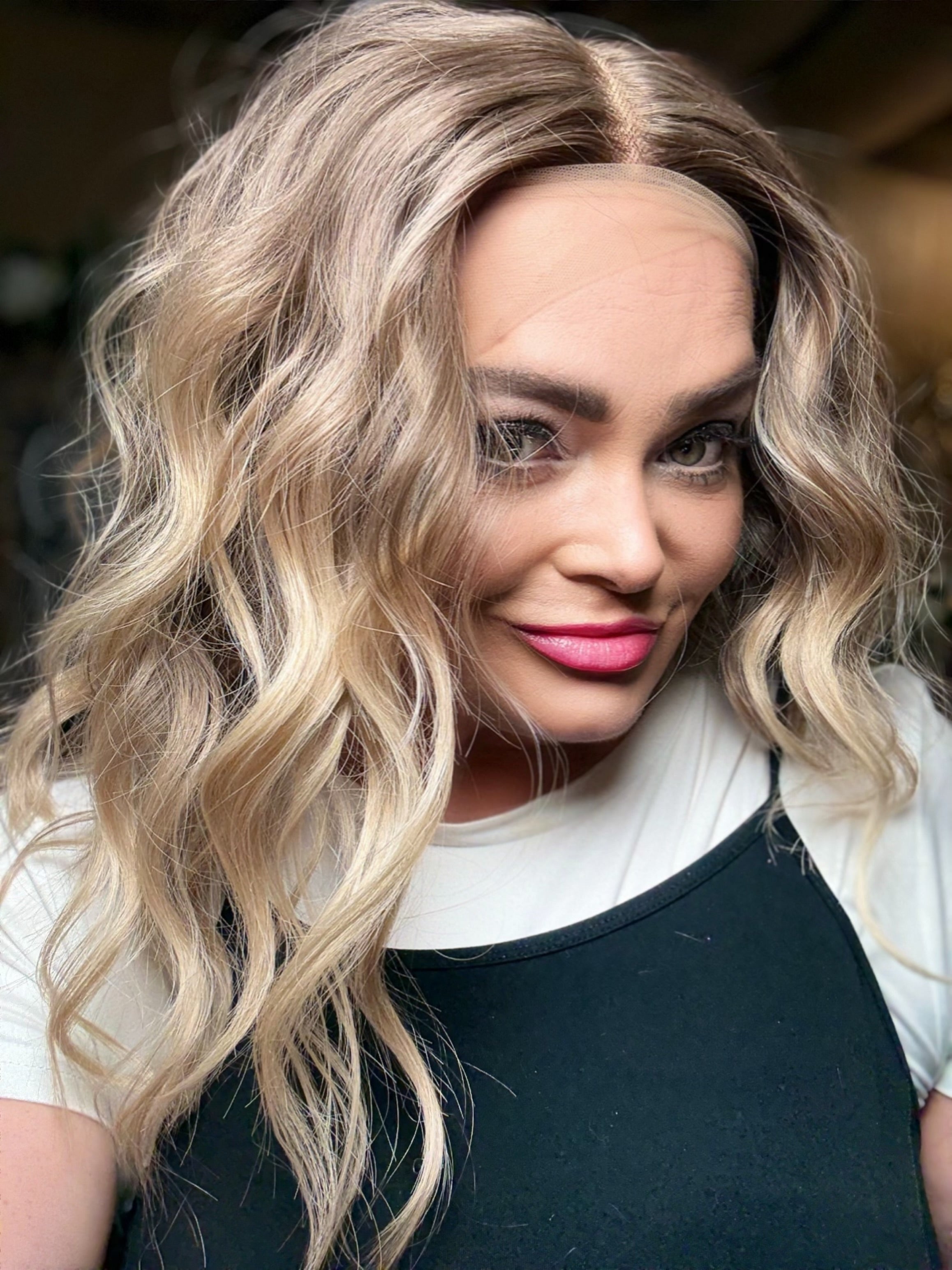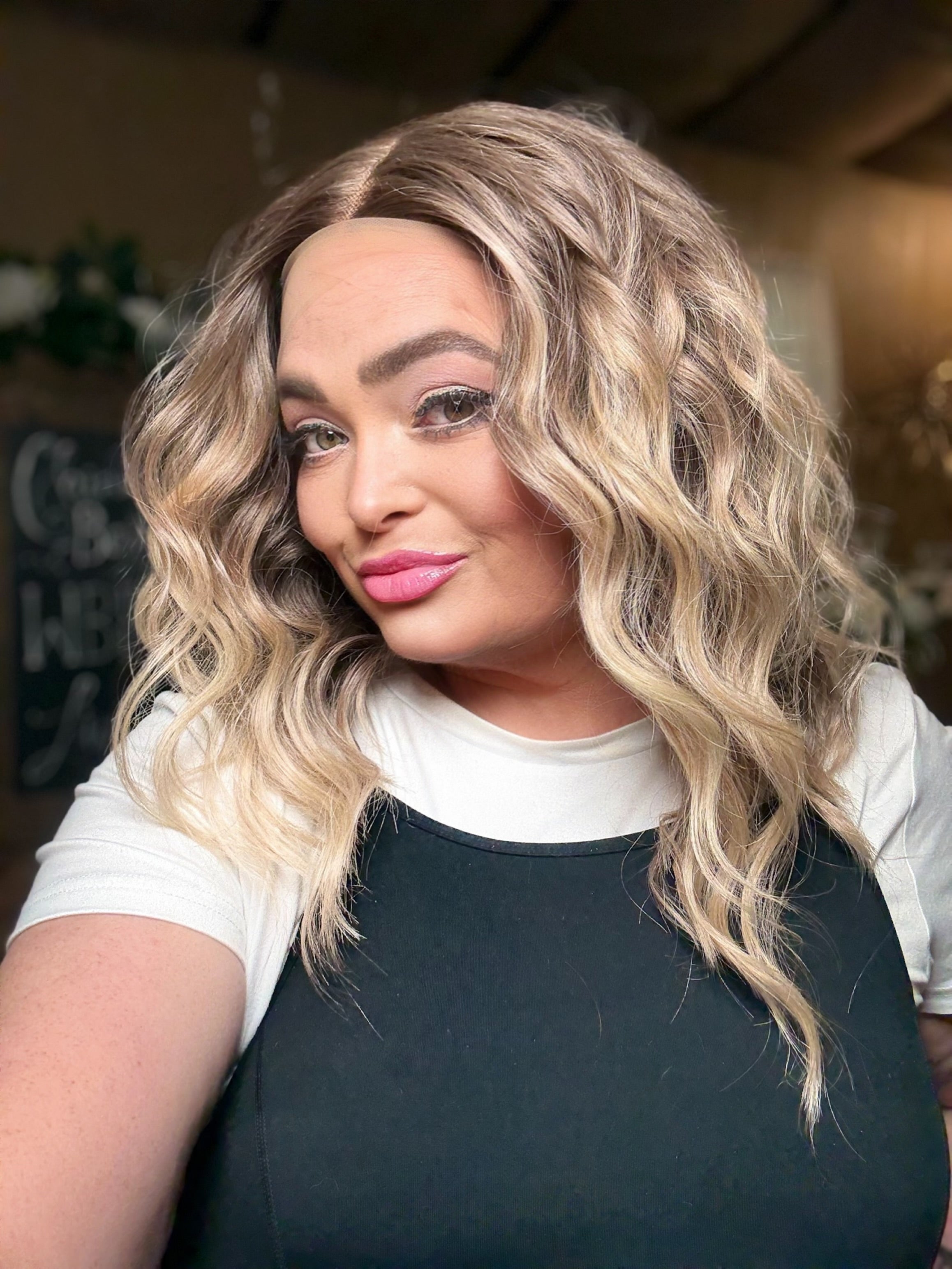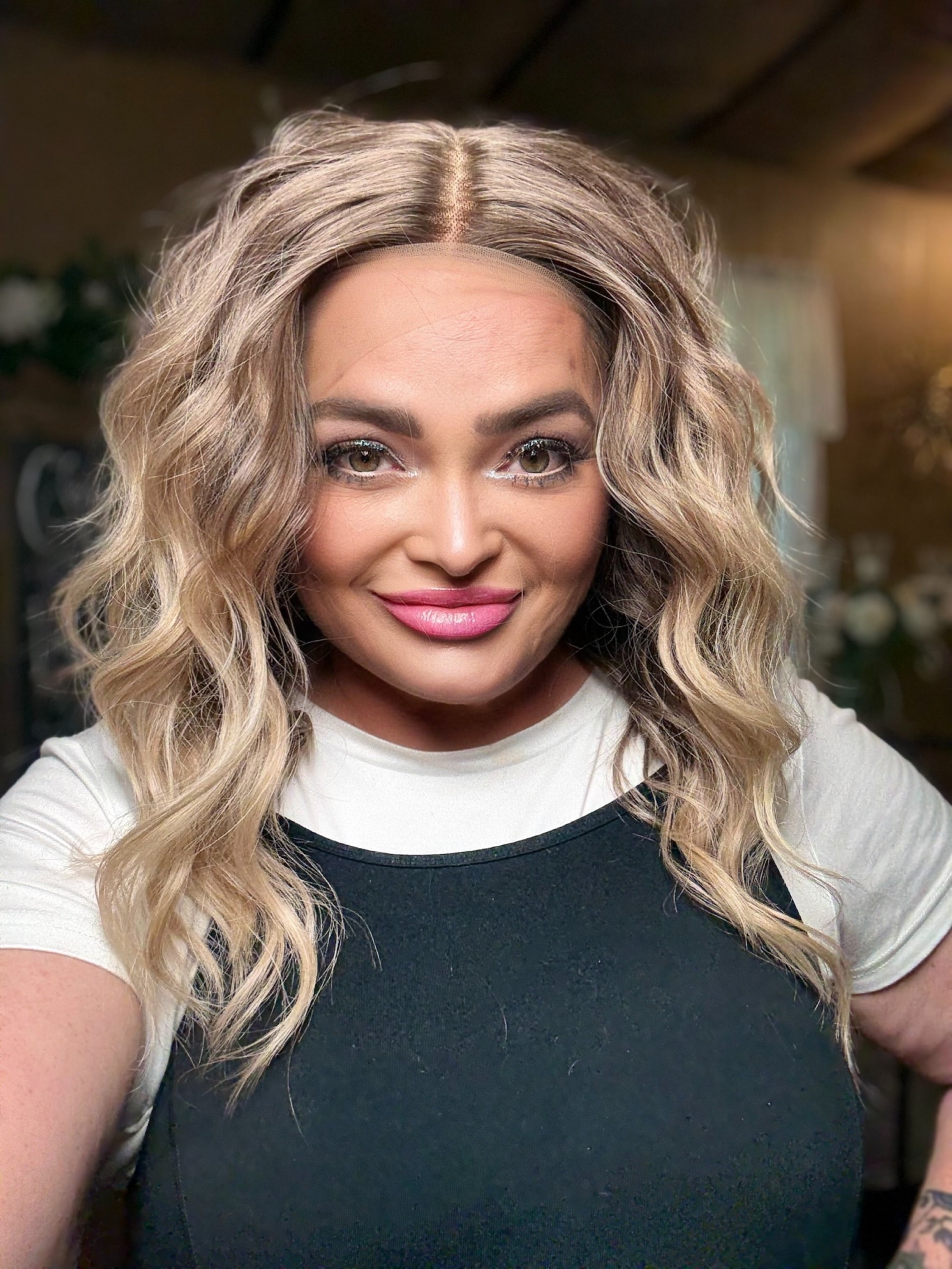 Experience effortless style with RIKKI, featuring a lace front T part for a natural hairline, 16 inch loose waves for added volume, and a low density for a comfortable fit. This premium heat resistant, synthetic fiber wig also includes a stunning brown blonde ombre and blonde money pieces for a chic and versatile look. Adjustable straps and a standard cap size ensure a perfect fit.