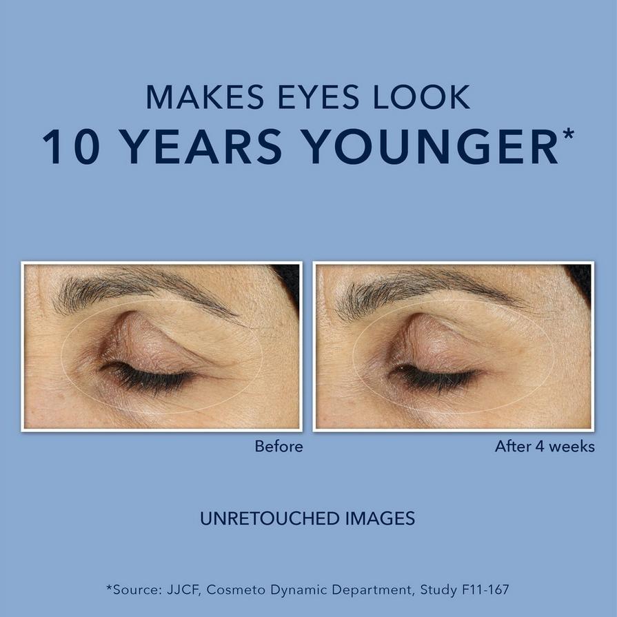 Specially formulated for the delicate eye area, it visibly reduces wrinkles around the eyes and crow's feet in 12 weeks. In addition, it evens out dark circles and reduces puffiness in 4 weeks. Our exclusive formula accelerates the removal of old, dull skin cells on the surface revealing fresh, new ones. The result is vibrant and healthier-looking skin.