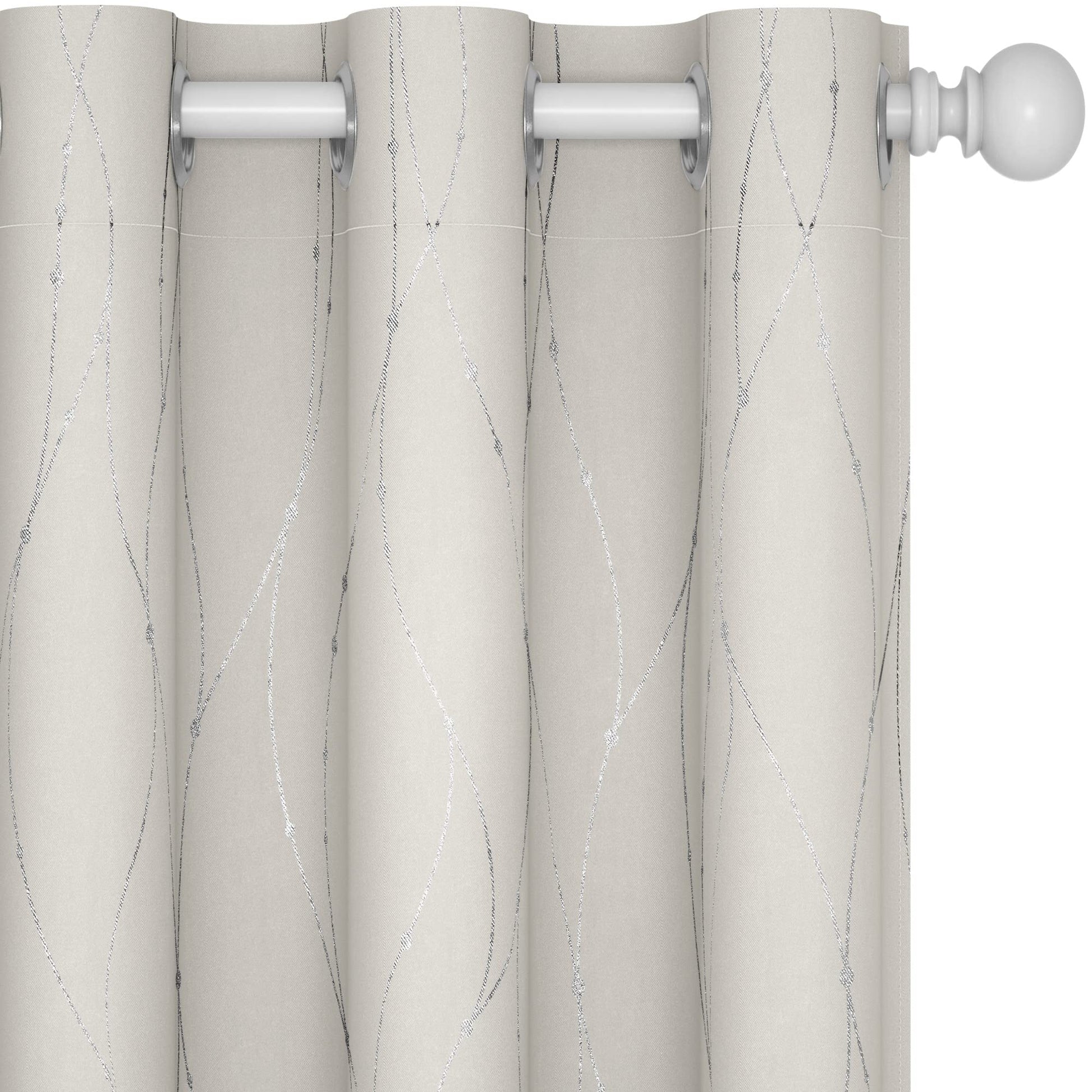 Room Darkening Curtains with Line Foil Print, 2 Panels