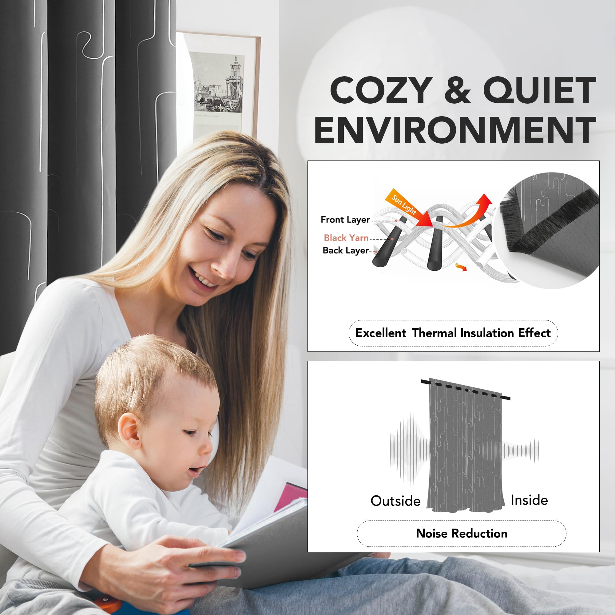 Our window curtains are made of 100% high-quality polyester fabric with a soft, silky feel that complements most decor. The soft fabric is upmarket and durable, ensuring longevity and sound insulation.