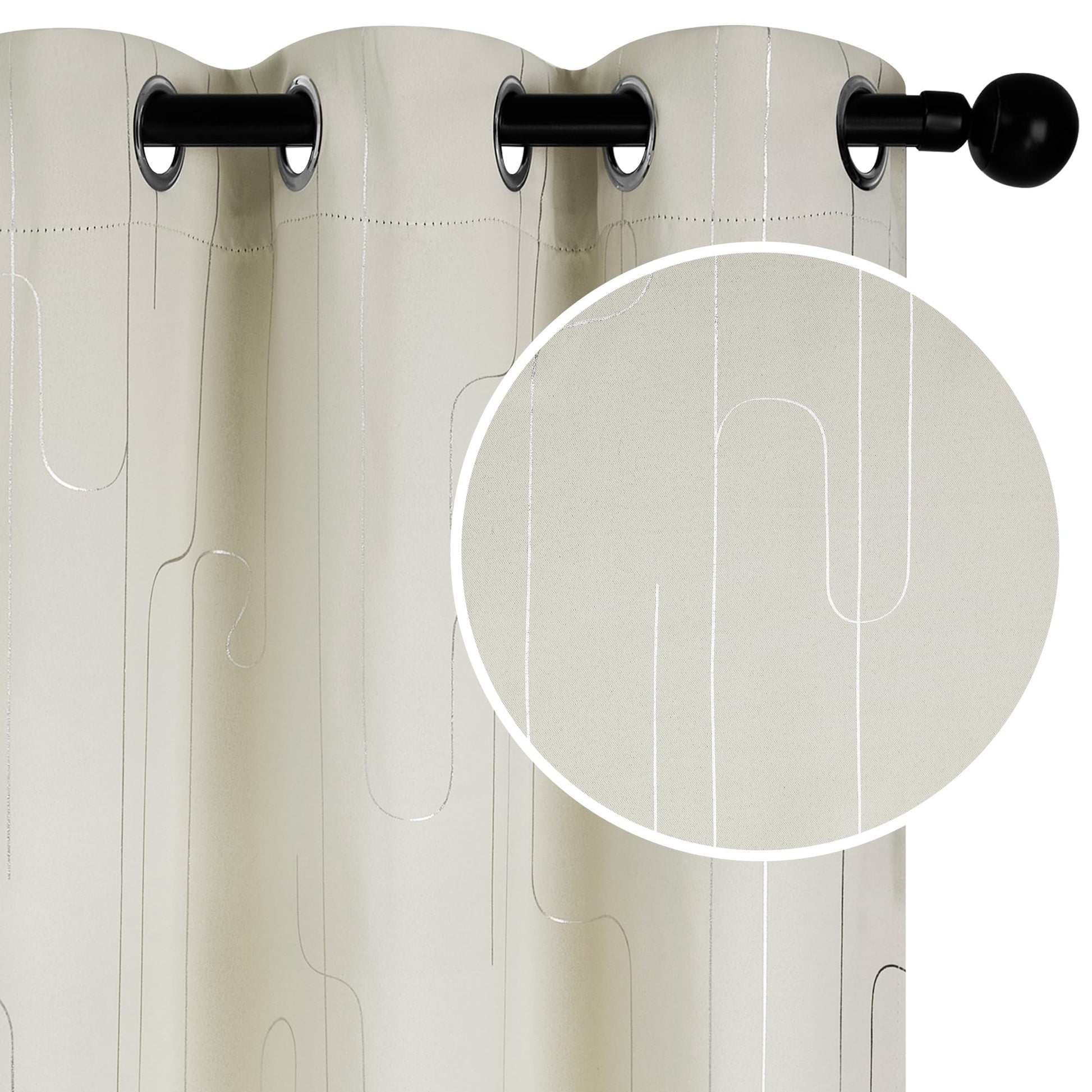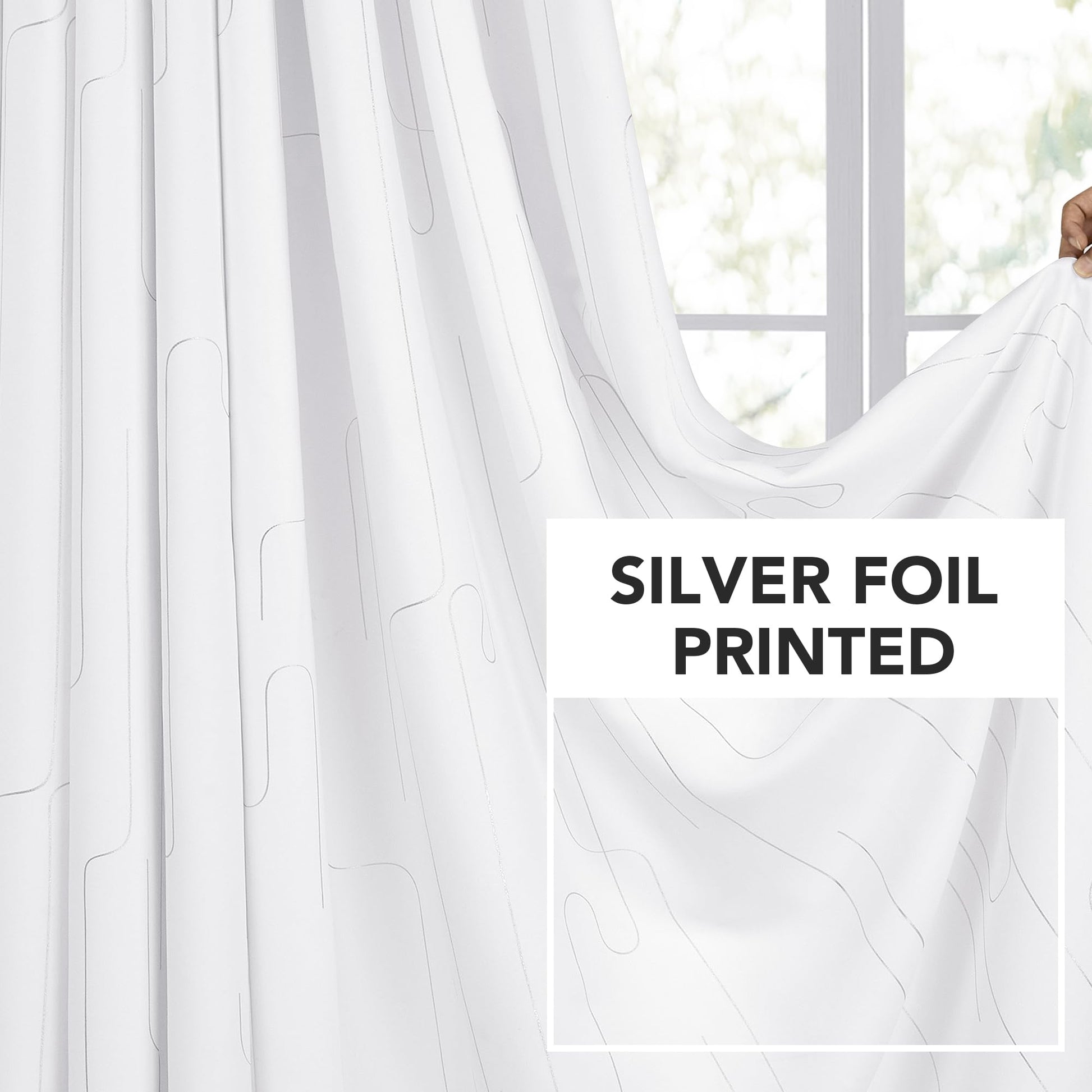 The classic silver lines pattern, foil printed on our room darkening curtains, creates an exclusive and elegant look. The silver grommet design makes for an easy installation and adds a touch of sophistication to any room decor. -